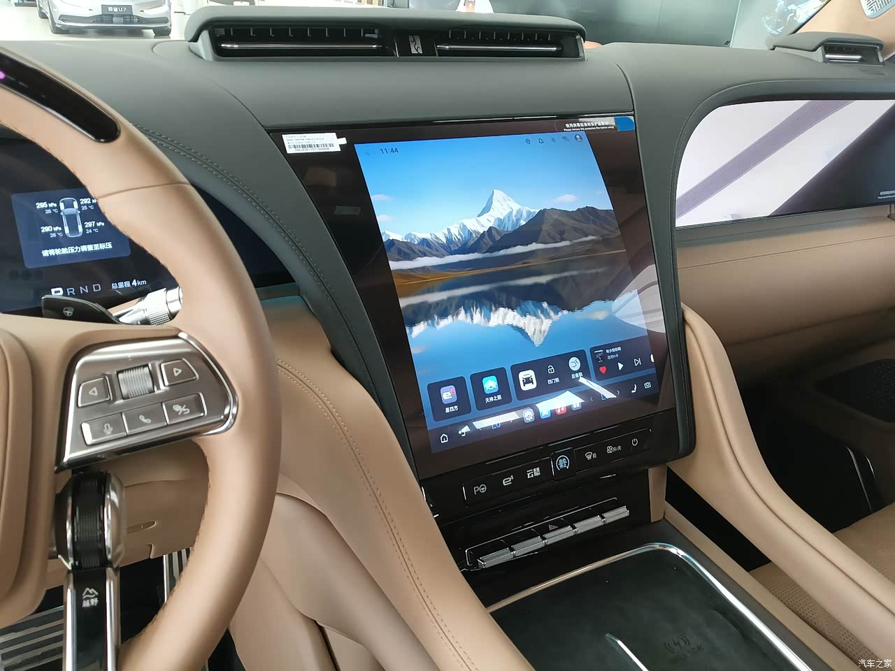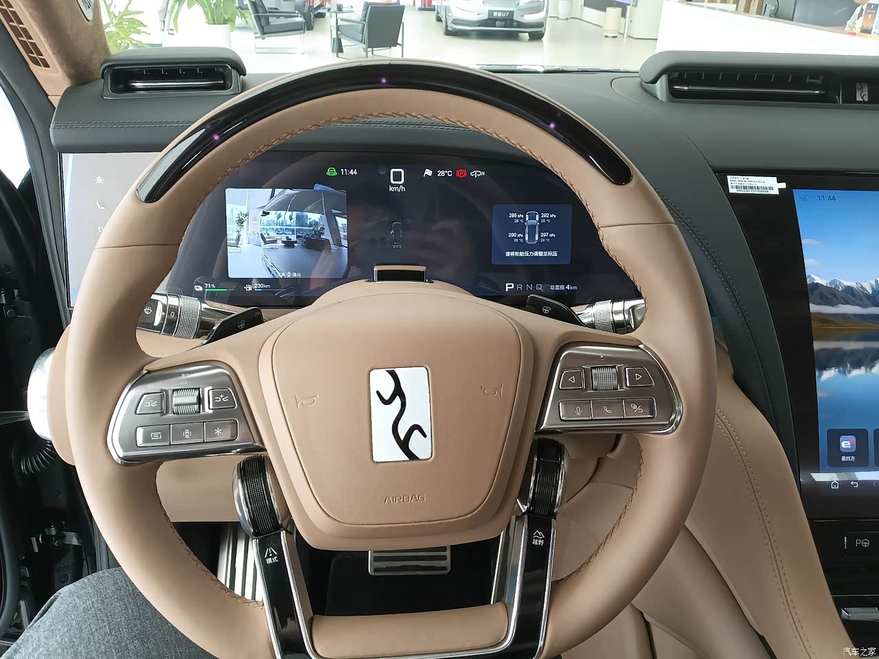 这次仰望U8L加长了车身长度,取消了后备胎,但是总体上的设计语言还是按照仰望U8的设计风格进行的. 依然的优雅和霸气。整车的设计语言结合了中国文化的传统元素,优雅之余,不失文化内涵,这才是我们国产品牌该有的样子。店里面邀请我到店内试驾品鉴,车子我大概坐进去看了看,变化蛮大的,更行政更商务了,非常适合有长途需求的老板使用.悬挂听说也做了调整,比以前更加柔软.重要的是邮箱得到了加强,由原来的75升变到了90升,这样续航里程焦虑再也没有了