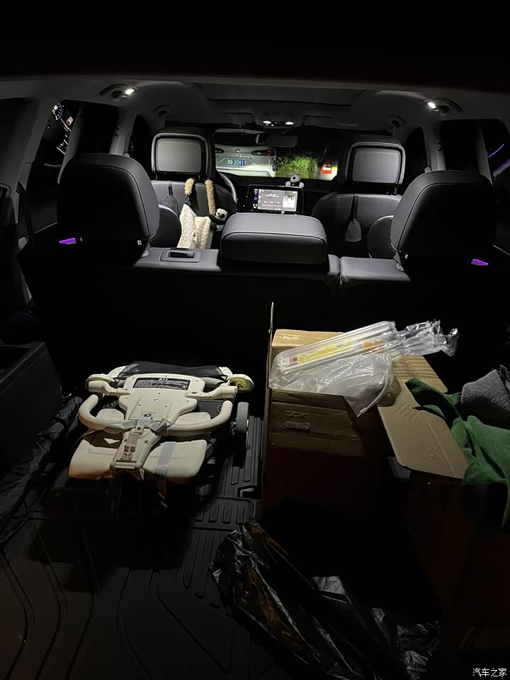 当初买车就奔着它的空间来的,因为他的第三排是真正能坐下成年人的,这两个月的时间就有好几次拉着全家坐满7个人的出行,家里人都说这车真大,一点不憋屈,坐着还舒服。我女儿在第二排睡觉的时候终于能伸开腿了。把第二排和第三排放到那就是一个1.8*2的大床啊!在车里躺着一点都不挤挺,我们一家三口都可以躺下。空间无敌!
