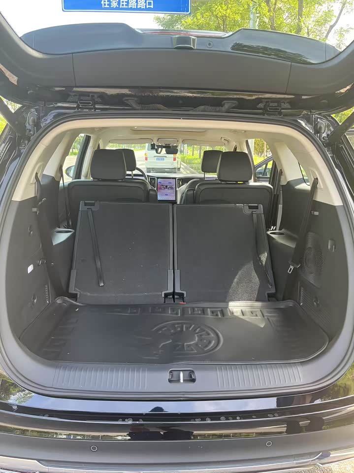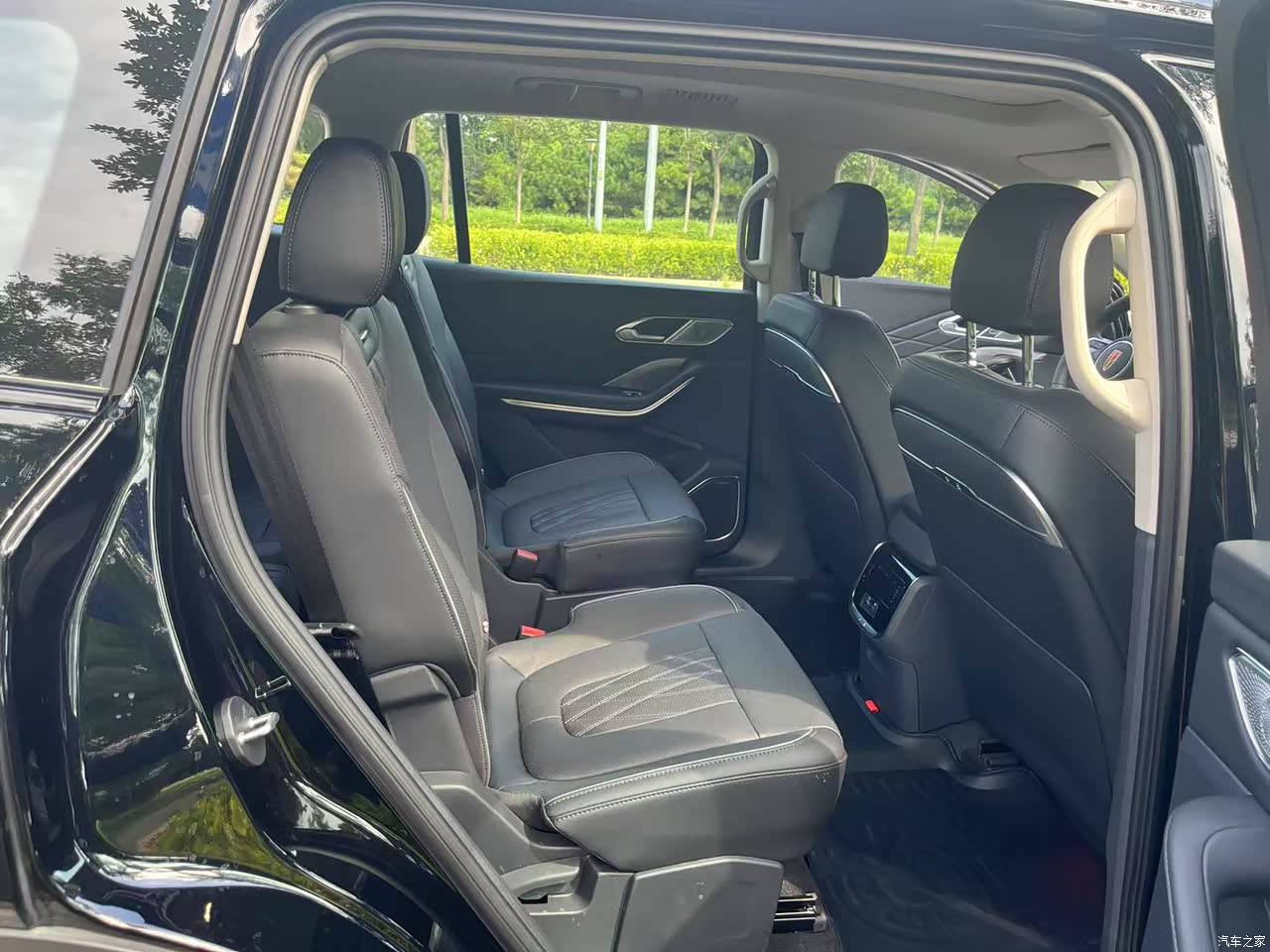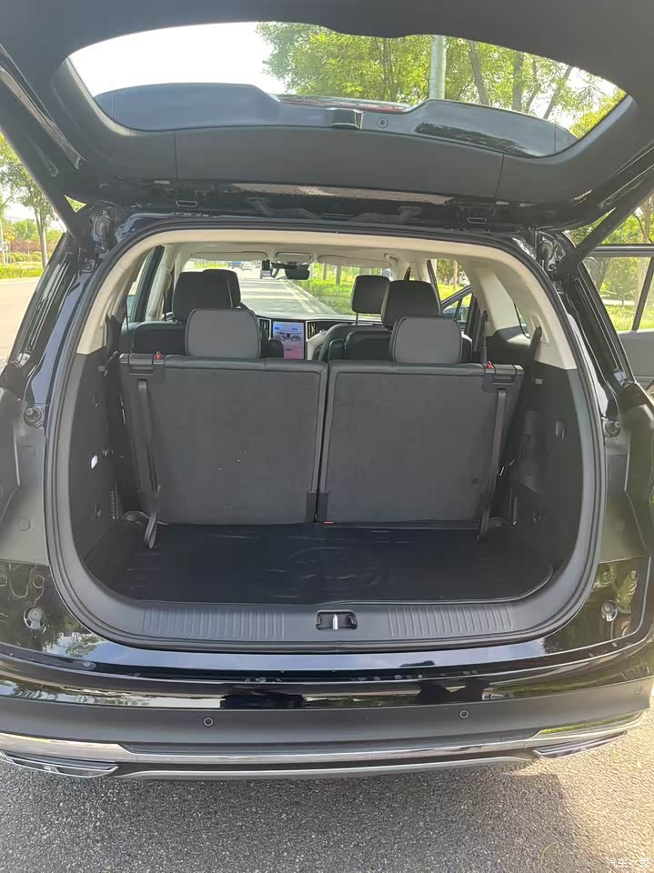 空间表现属于“前优后劣”,前排和二排没问题,第三排和后备箱是明显短板。前排空间宽敞,我身高1米83,调整好驾驶坐姿后,头部、腿部都有富余,长时间开车不会觉得憋屈。 二排空间也够实用,头部和腿部空间能满足成年人舒适乘坐,中间通道的便利性很好,方便照顾孩子也方便上下车。 但第三排腿部空间太局促,成年人坐进去膝盖会顶到二排座椅,只能短途应急用。 更关键的是,启用第三排后,后备箱空间会大幅压缩,日常家庭出行需要的儿童推车、行李等物品很难同时放下,实用性打了折扣。
