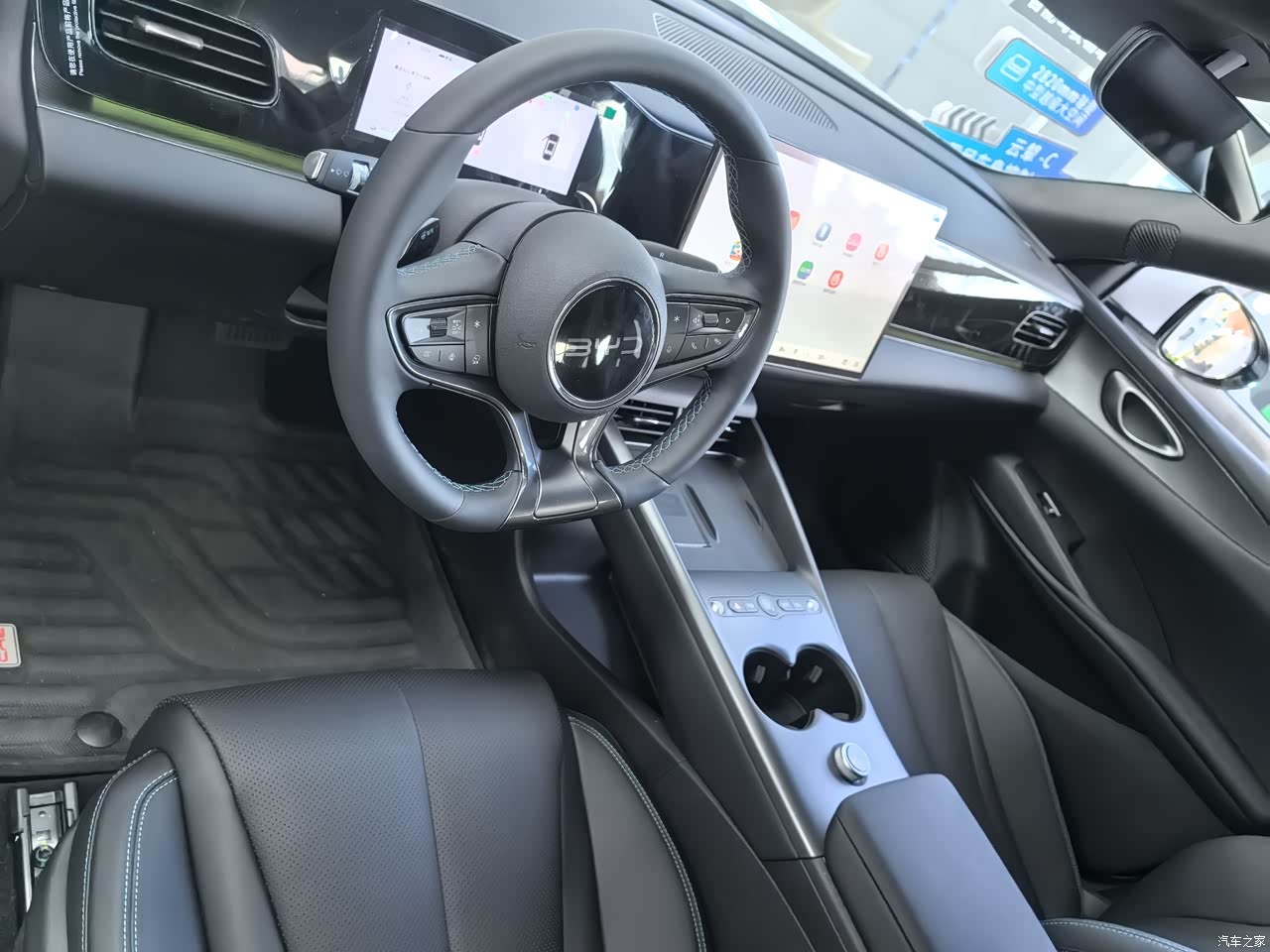 内饰我觉得还不错。我很喜欢他的一个怀档设计,方向盘下面的很合理。开起来也会更顺手的感觉。内饰的一个材料做工比较好,车内居然没有什么异味,能看得到的地方都还有档次感。有这个车的一个全液晶的仪表盘和车机大屏有科技感。这车还可以无线充电。