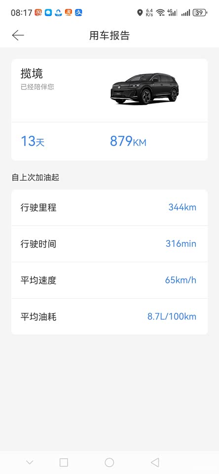 可能新车吧,现在的油耗高。反正是跑了300多公里的高速8.7的油耗,看后面还会不会低