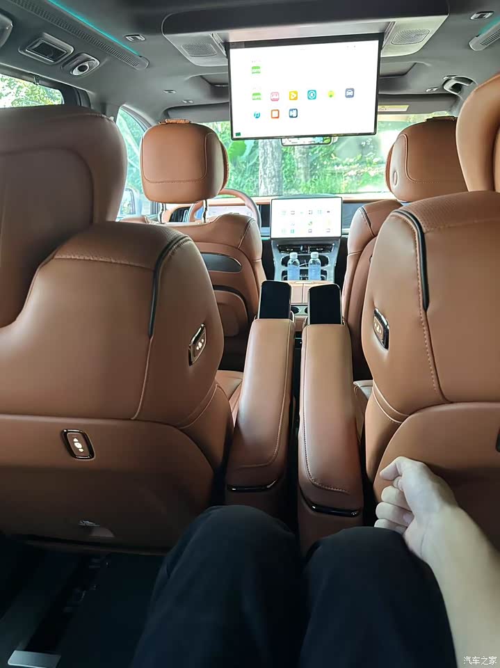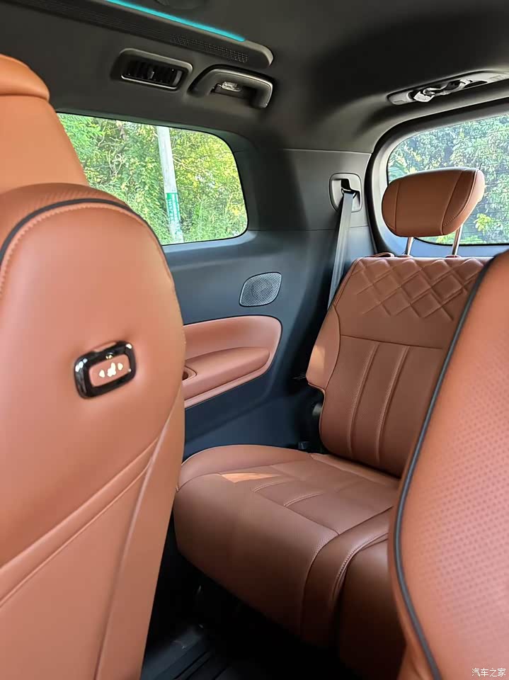 商务接客户有面,家用带娃够装,商务场景下,第二排的航空座椅太加分了!客户坐进去后,我帮他调了靠背角度和腿托,他说 “比坐飞机经济舱舒服多了,跑长途也不累”。中间的过道够宽,我从主驾走到后排送资料,不用侧着身子,显得很从容。 家用方面也没让人失望,带了老婆的母婴包、孩子的折叠推车和玩具箱去试。第三排立着的时候,后备箱能塞进推车 + 一个 22 寸行李箱,母婴包和玩具箱能塞在第三排侧面的储物格里,不用堆在座位上。孩子坐在第三排,还能跟第二排的老婆说话,不用凑着身子喊,平时带他去公园,他在后排玩玩具,掉地上也能自己捡,不用我停车帮忙。