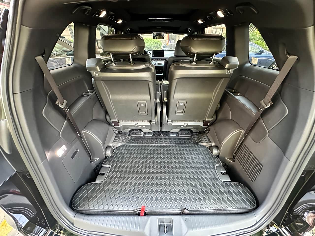 后备厢在七座状态下,放几个小箱子还行,要是满载,大件行李就得规划规划了,如果座椅放平比小卡车还大呢。