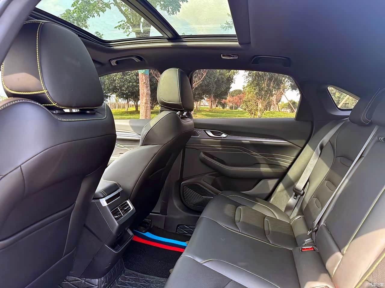 空间表现堪称越级,车内空间十分充裕。后排和前面有半米的距离,顶部也高大,我179身高坐后面腿部空间有两拳的距离,顶部间隙也有一拳半,没什么拘束感长时间乘坐舒适性高的。储物后备箱能放下三四个大行李箱,车门和双层的中控台、杯架手扶箱之类的放小物品也很好用。