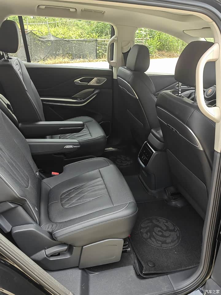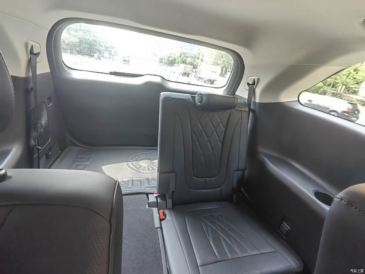 作为中大型SUV,红旗HS7 PHEV的空间表现确实很棒,前排以我身高180cm,调整好驾驶座后,头部还有一拳多的空间,座椅包裹性很好,腰部支撑到位,对于经常开长途的我来这点非常重要。二排是独立座椅,中间有宽敞的过道,不管是客户坐还是家人坐,腿部都能轻松伸展而且座椅可以调节靠背角度长途乘坐也很舒服,如果需要放东西二排座椅侧面还有小储物袋,放手机、水杯都很方便。三排和后备箱可以做联通调节,平时三排不用的时候,可以整体放平或半侧平放,后备箱空间瞬间变大。如果临时需要坐人,三排坐两个不太高成年人也不会觉得太挤,但确实不能久坐。