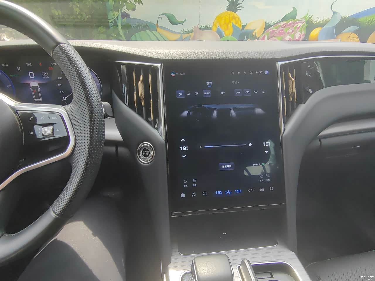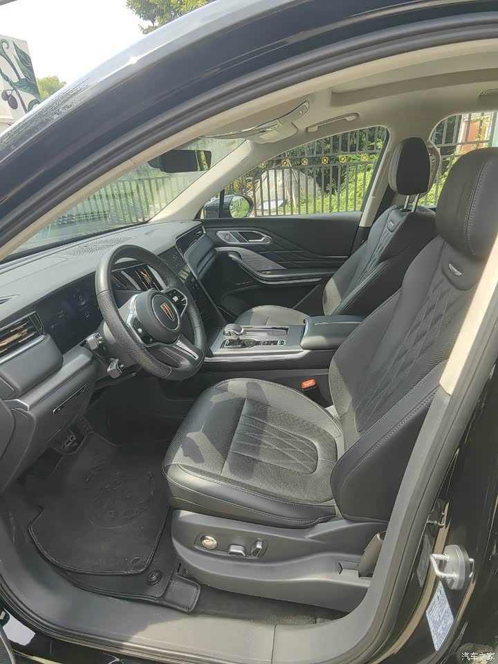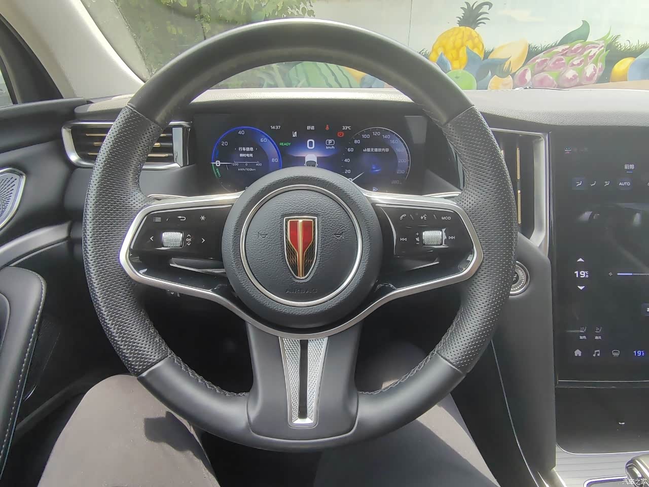 内饰的风格是走稳重大气的路线,庄重典雅的同时也融入了新能源风格,两个液晶屏(仪表盘+中控屏)的尺寸很大,显示效果清晰。用料方面,中控台、门板内侧都用了软质包裹,摸起来很细腻,搭配银色镀铬饰条和少量亮面装饰,不会显得老气反而有种轻奢的质感。细节设计也很贴心:飞机档把的造型很有手感,握起来很舒服,档把上的红旗元素很小巧但很显眼;方向盘是真皮材质,粗细适中,转动时的手感很好。另外提车的时候几乎没有明显的新车异味,比之前的车晾了半个月还味道好太多了,这点必须给好评。