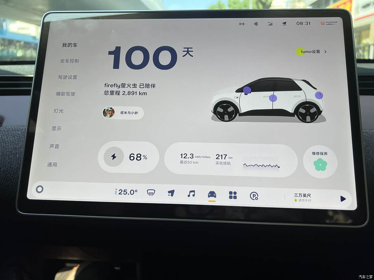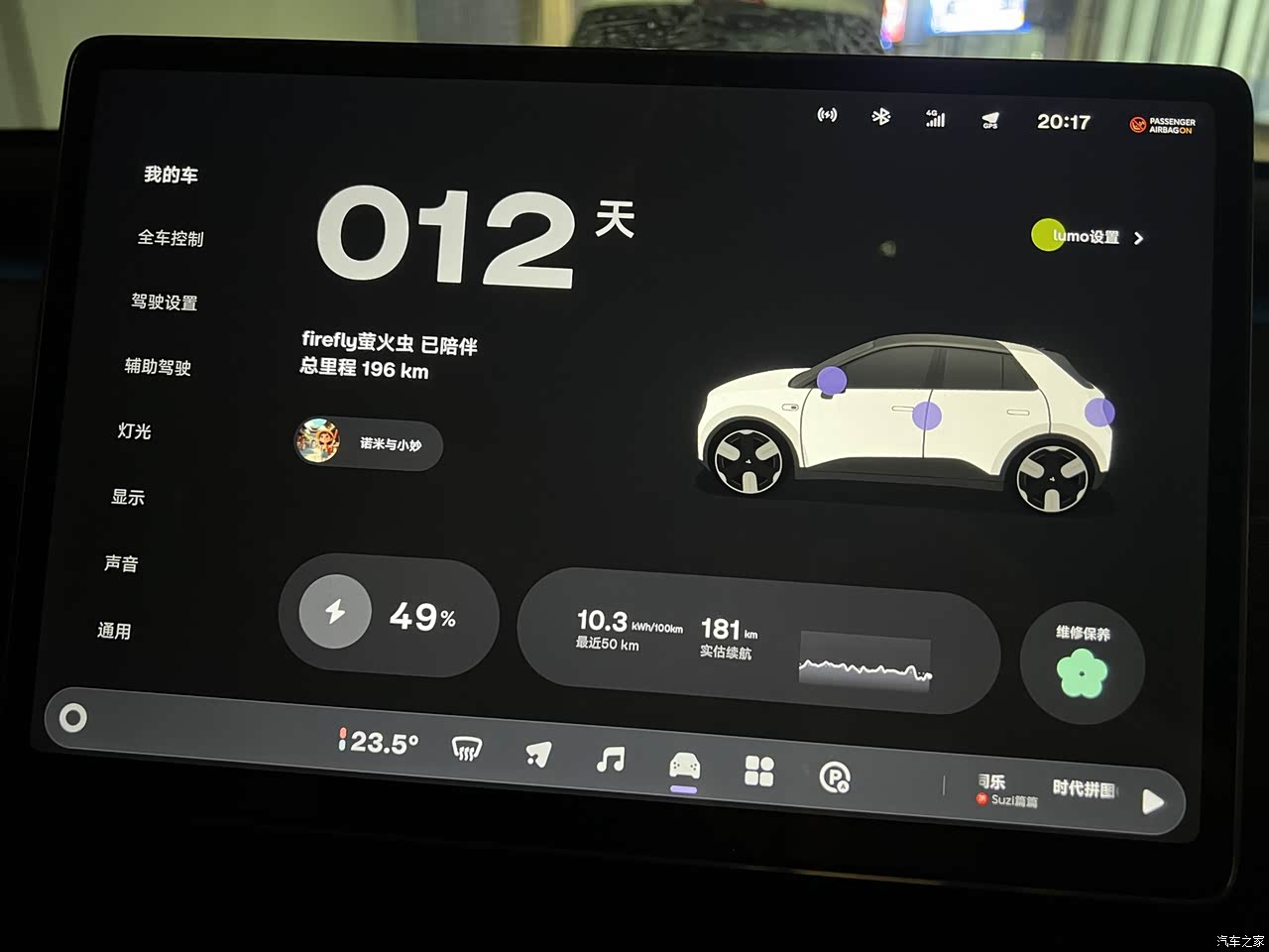 选择萤火虫首先因为它的安全性,试驾后它的驾驶感受也很惊喜,既能提供驾驶乐趣,开起来又很稳,隔音,音响在同级别车型里算高水准,很顶;充满巧思的内饰和车机也很加分。城区开,不仅小巧好操控停车还特别方便;能耗上也很低,周末要是不开出去玩,充满电可以通勤2周没问题。可是自从开上它,周末我们都不想宅在家,就想开着它去海边看日出,去周边小镇吃美食逛老街,相比之前开油车出行成本大大降低,目前一个月充电费用不会超过150元。 总体来说萤火虫可以算同级别车型中性价比最高的,音响、香氛、氛围灯能够提供很好的情绪价值,能耗上也能很直观的节省成本,后续等到五代换电站上线,出行能换电能升级高度数电池那就太完美了!