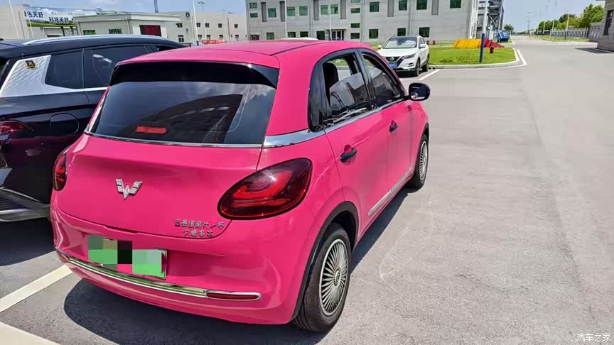 整体外观是属于那一种看一眼就印象深刻,颜色很亮,车身线条非常的圆润,很适合女生来开,轮毂的造型也比较复古,看起来很时尚。