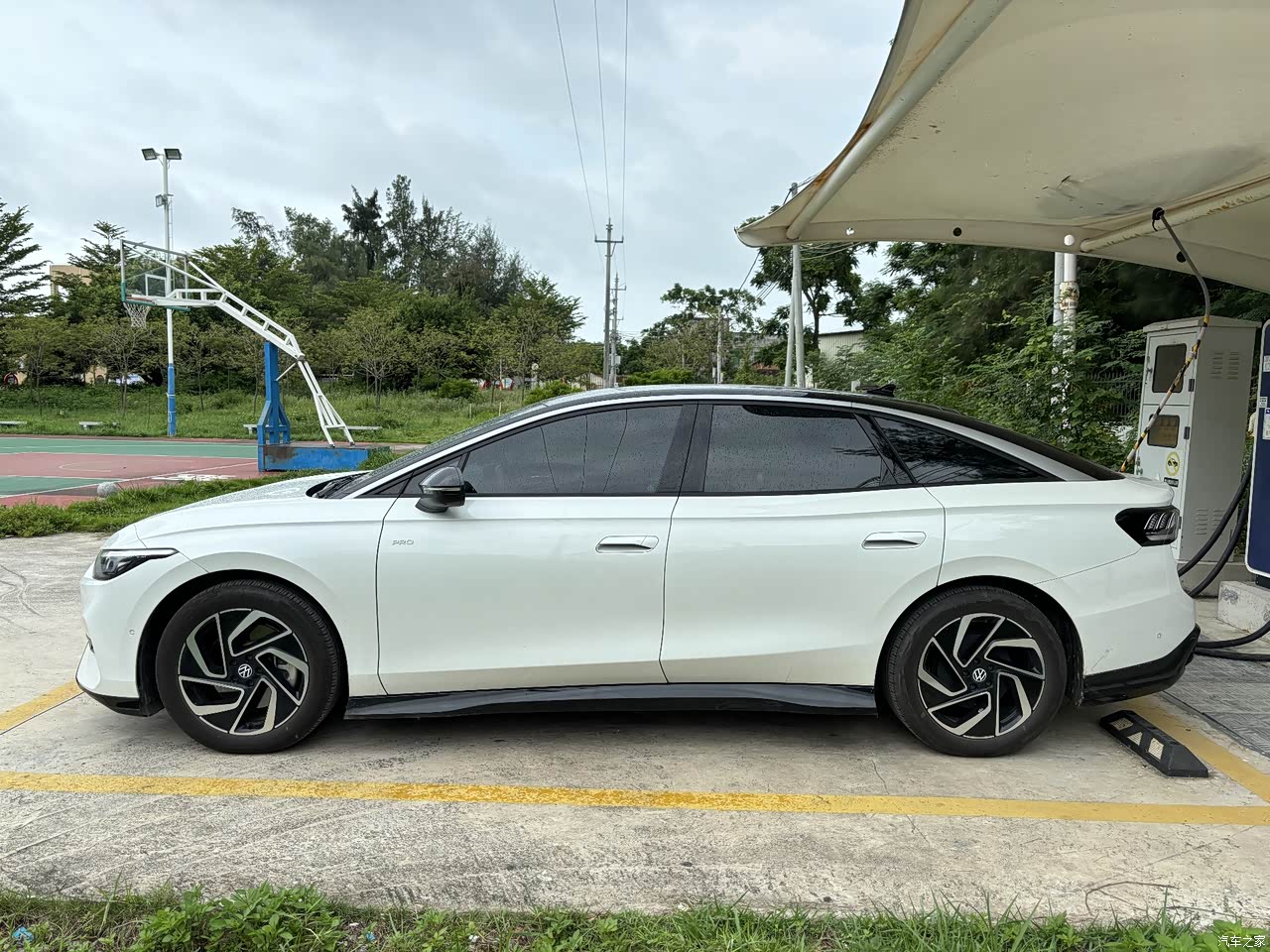 ID.7车身设计我是比较喜欢的,一开始没想到白色好看,最后我是加钱买了珠光白,车身线条流畅好看,车头和车尾都是采用贯穿式灯带设计,加上前后发光大众车标,晚上特别好看,辨识度很高。