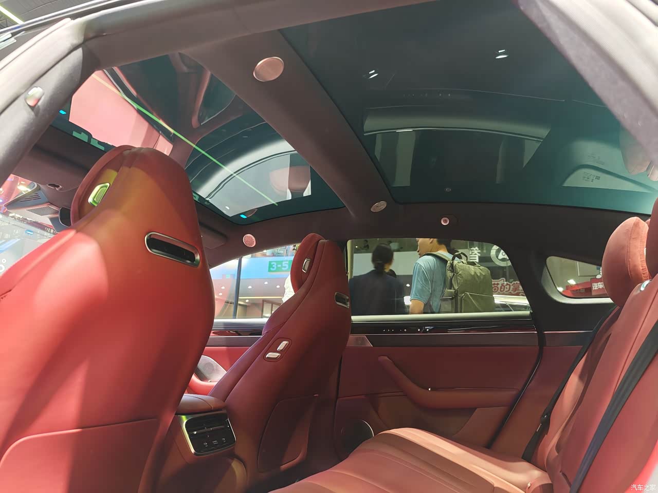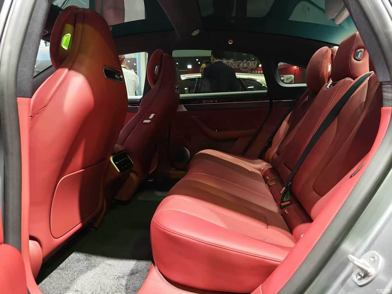 外观:鲲鹏展翼式的前脸、搭配红色卡钳的大尺寸轮毂以及碳纤维小鸭尾,看起来相当运动。而且空气悬挂降到最低时候的姿态尤其好看。新的LOGO看起来很有豪华的气息。新的配色,极光绿非常的好看,很有质感。