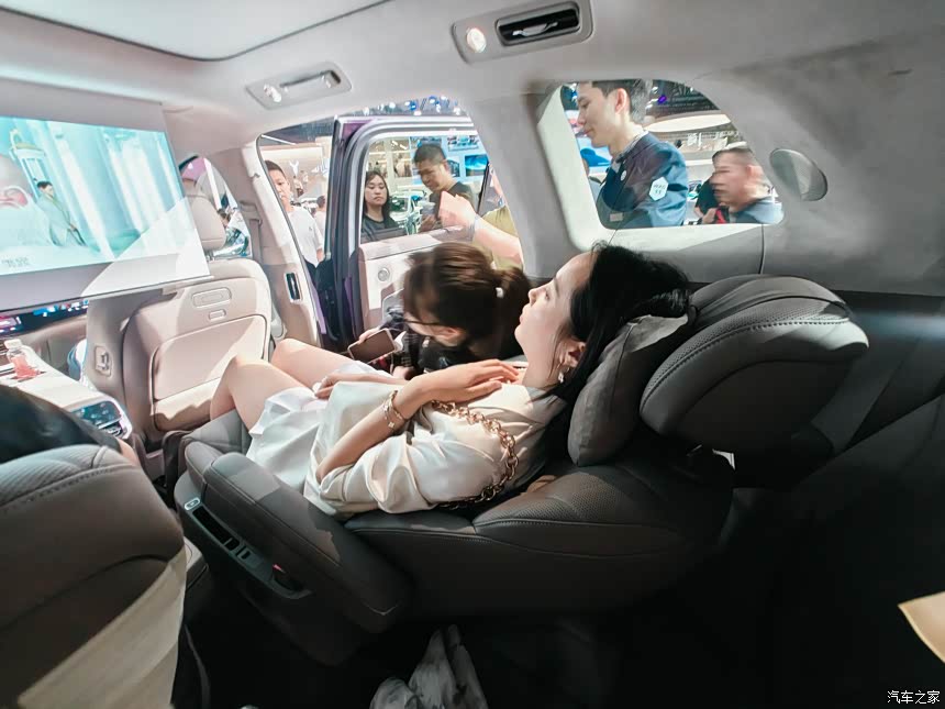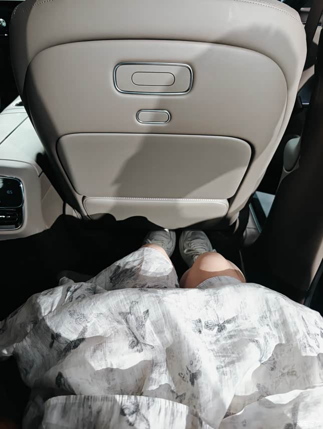 坐进车内,第一个感觉是:宽敞、明亮、舒服。内饰走的是简洁温馨风格,几乎没有物理按键,中控一块大屏基本搞定所有操作。用料很扎实,能摸到的地方基本都是软包,细节做工也挺精致。副驾是带腿托的零重力座椅,能几乎放平躺着休息,中午在车上小憩一会儿特别享受。后排地台全平,座椅宽大厚实,靠背还能调节角度,老人小孩坐久了也不会累。