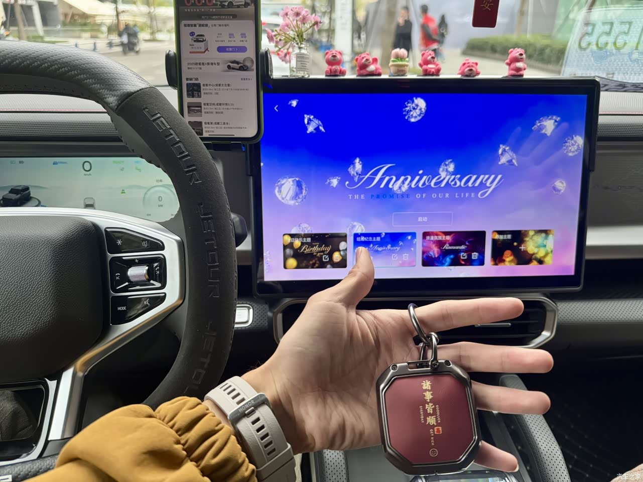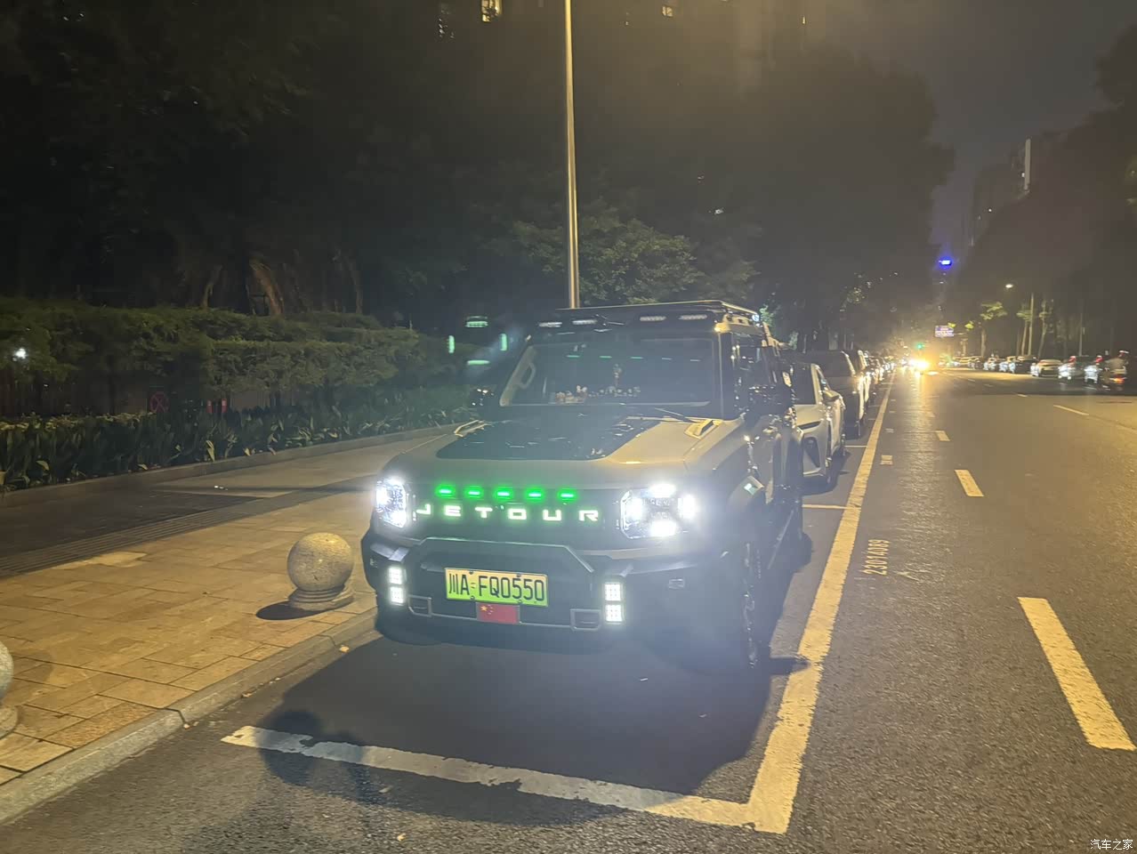 ★★★★★外观与设计:颜值即正义 山海T2四驱版最吸引人的无疑是其硬朗的机甲风格设计。车身线条方方正正,力量感十足。车头的分体式大灯非常独特,上方的日间行车灯像两条犀利的眉毛,下方大灯的亮度和照射范围在夜间行车时给人满满的安全感。车身侧面笔直的腰线贯穿全车,搭配大尺寸越野轮胎和黑色轮眉,越野气息浓厚。车尾的贯穿式尾灯夜间辨识度极高。回头率真的超高,无论是去商场还是学校,都能吸引路人的目光和询问,满足感十足,让我印象深刻的是,每次停下来,都会有人围观,前来询问这款车的信息,真的超级吸引眼球。