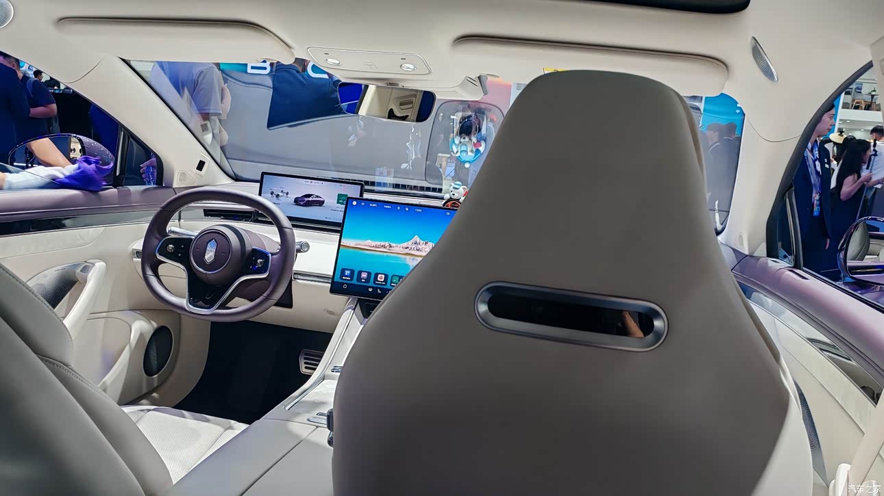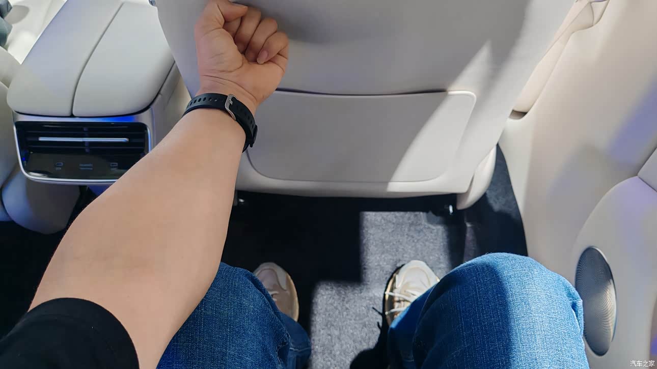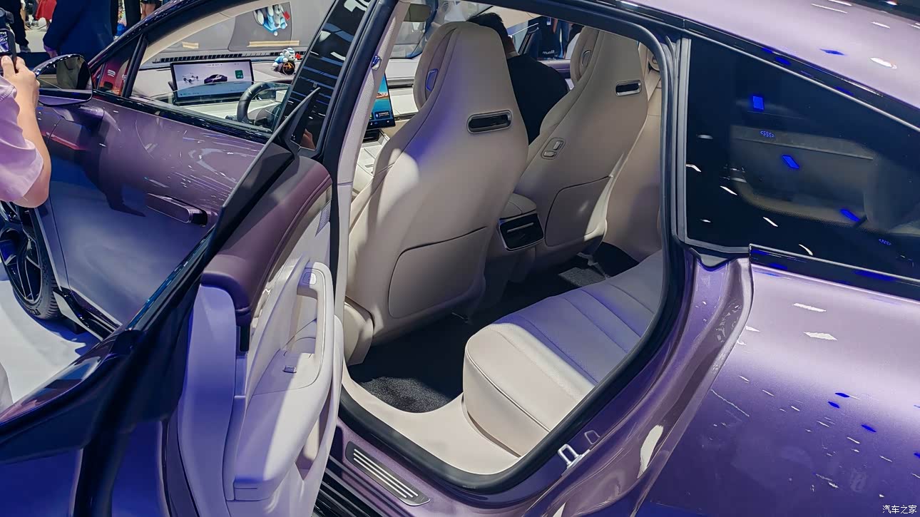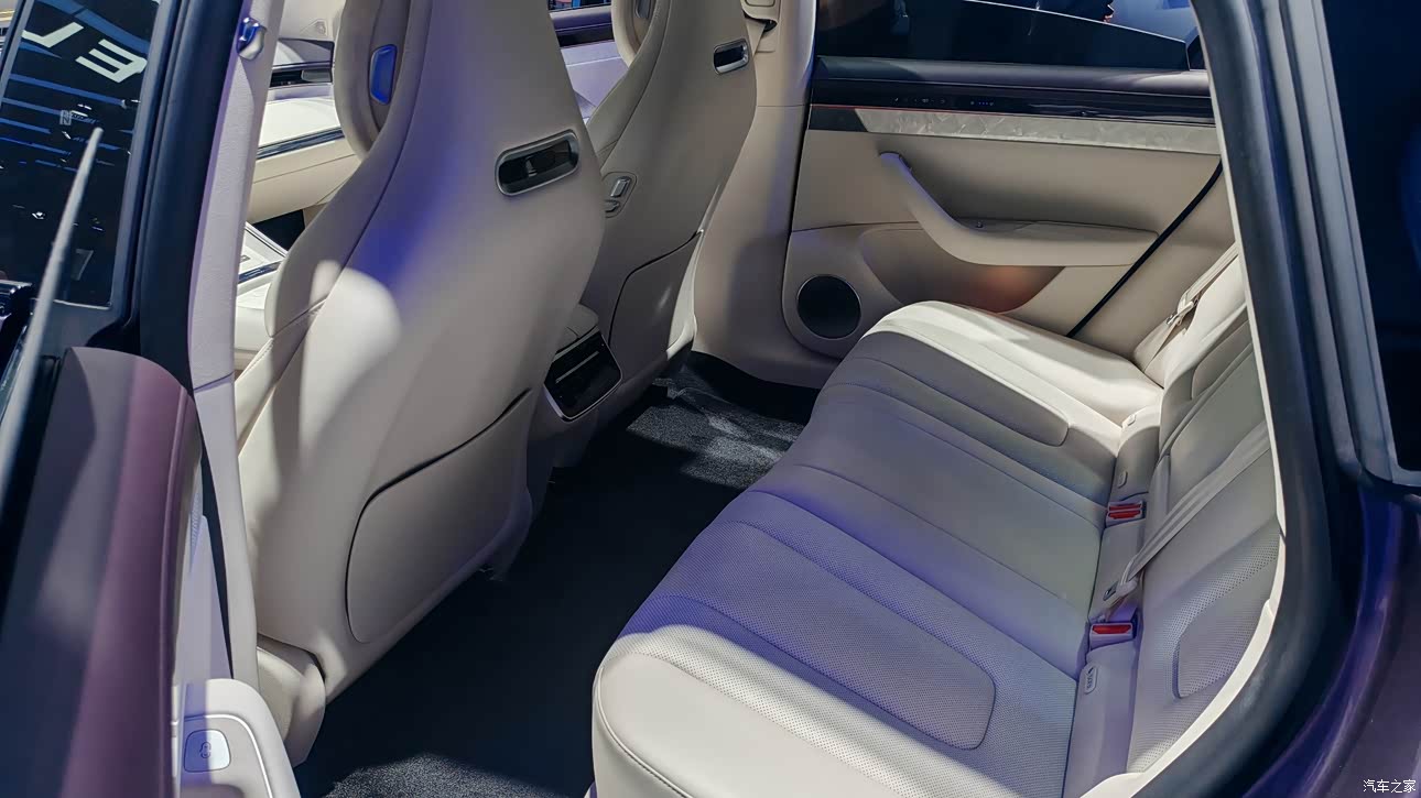 前双叉臂加后五连杆的独立悬架,自适应空气悬挂,双电机四驱的驱动方式,驾驶感受一定不错。由于本次在车展上仅体验了静态的感受,首先是车内空间非常大,坐在后排座椅翘个二郎腿都是绰绰有余,有着越级的空间表现,而且座椅柔软适中,不软不硬,乘坐起来非常舒适。动态驾驶感受,试驾后补充。