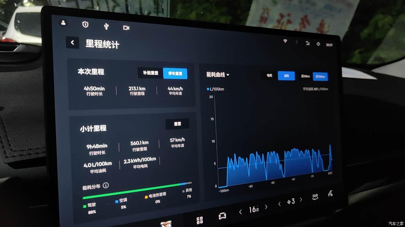跑了600公里。中途大约充了不到30度电吧。25.26这样,换算下来大概消耗不到30升油。每公里3-4毛钱没什么问题,离车锁车是吉利的标配了。手机解锁效果也比较好。给人的体验感和电车相差无几。情绪价值我觉得吉利给的还是比较到位的,抬头显示总感觉做的有些低。目前开起来的话感觉一旦坐直就有点看不见抬头显示了。试了一下调整。效果并不明显。不知道设计问题还是我没有调对。 然后就是座椅通风。不知道是所有座椅通风都这样还是吉利的问题。开启之后屁股下会吹风。凉凉的。感觉怪怪的