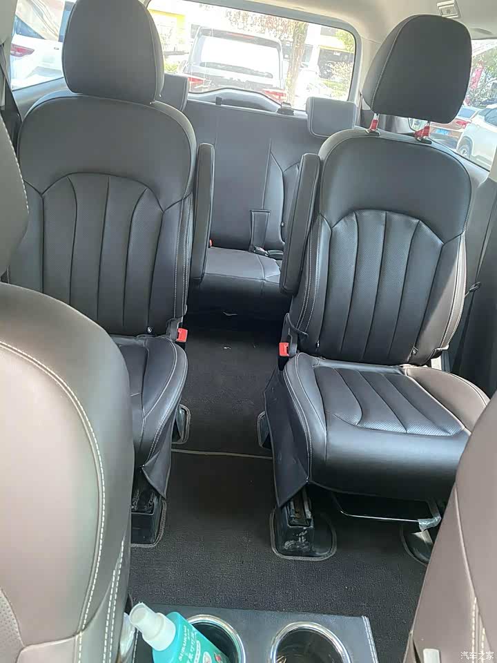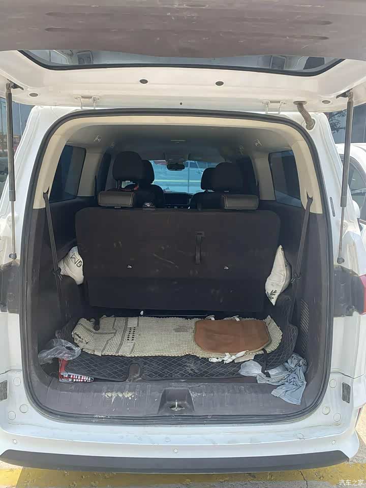空间 这车的宽敞大空间也是当初买它时的一个重要原因,我坐在驾驶位时一点都不拥挤,头顶距离车顶还有大概一拳多的距离,活动自如完全没有感觉到拥挤和闭塞。侧门上下车通道也很宽敞,二、三排坐下后腿距离前座椅还能富裕两拳多的距离,学生的书包就放在脚边,腿也伸得开。座椅坐着宽大也舒适。这车后备箱空间也不小,周末接送一些住校的孩子行李多也都放得下。
