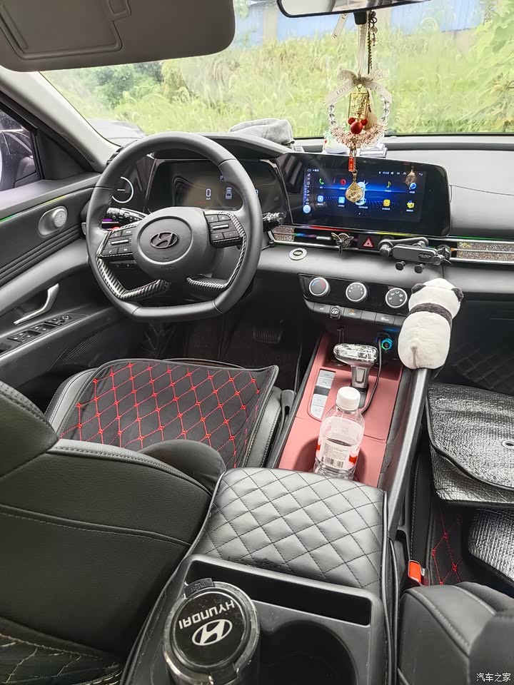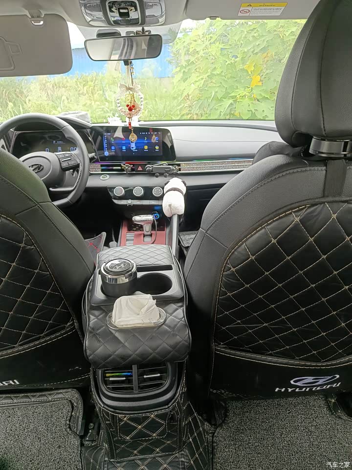 内室布局设置一般,用料比同级别车稍微差一些,整体来说能接受,看过索纳塔内室比它好太多了,当然毕竟是中型车,高一个档次,价格也贵几万块,人家是大爷,咱们不能去比较。 自己加的氛围灯,花了一千大洋,晚上效果比较明显,我是现拍的,又是白天,所以颜色看起来不明显,能提升情调,感觉舒服一些。