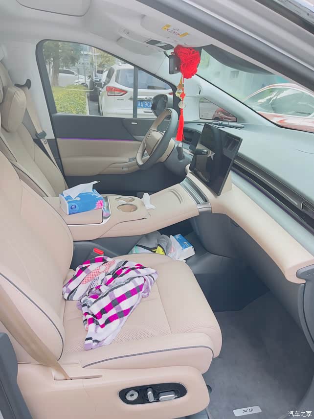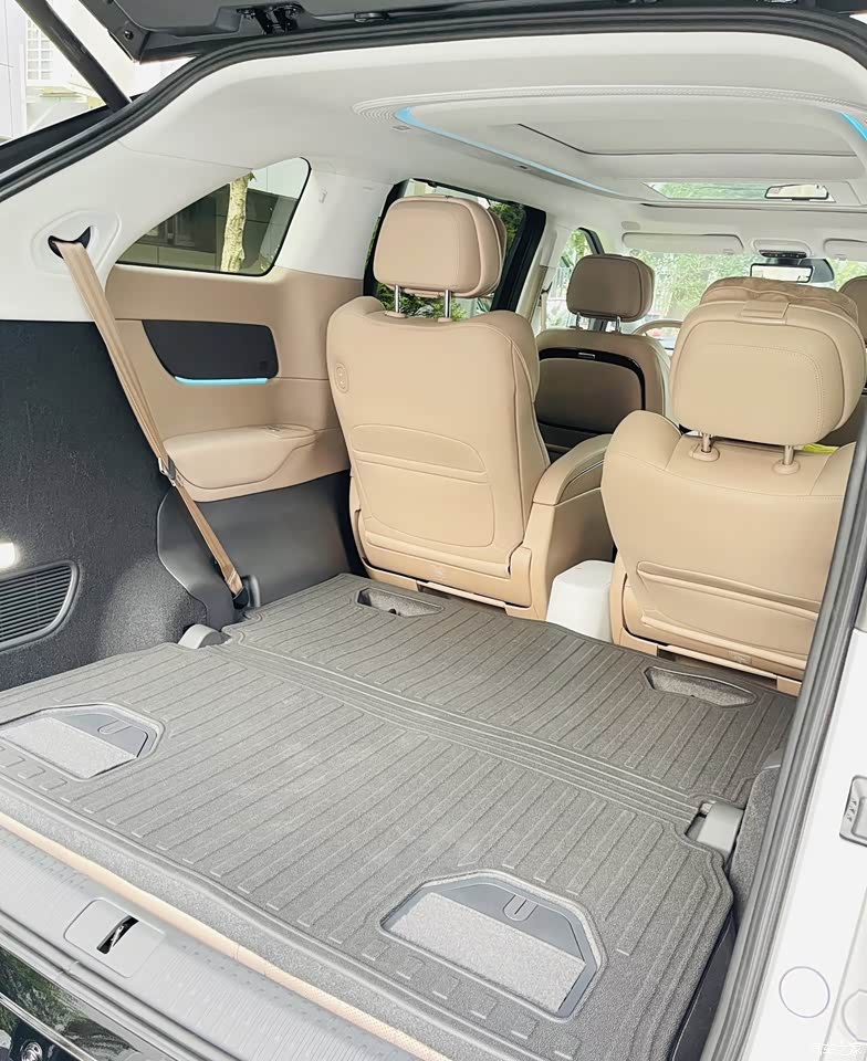 买x9最看重的就是它的空间能力,真的是巨大啊,二排零重力都不影响主副驾位置,平常我都是当大四座来使用 提车后就出门自驾武汉,路上睡了2次服务区,三排放平,铺上充气床垫,人可以完全躺平不顶脚,睡2个大人都绰绰有余