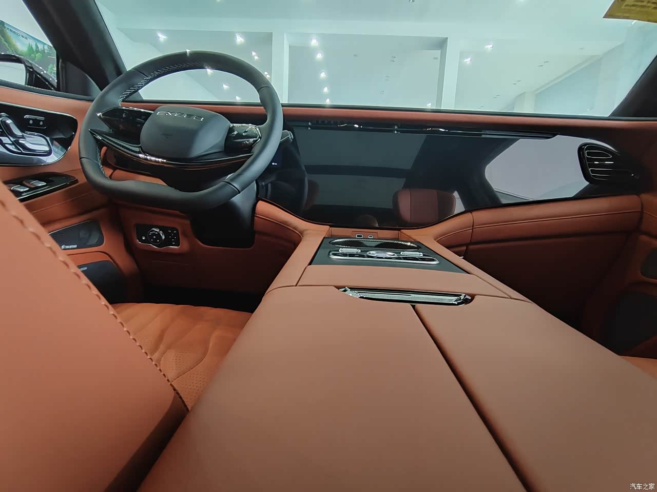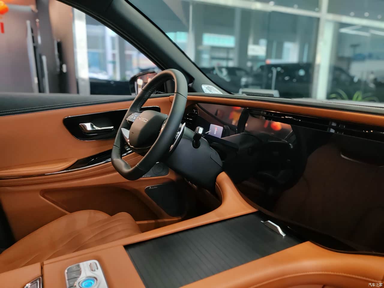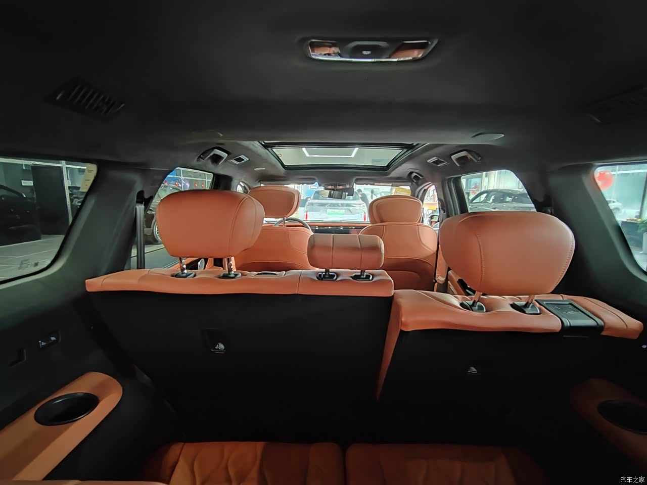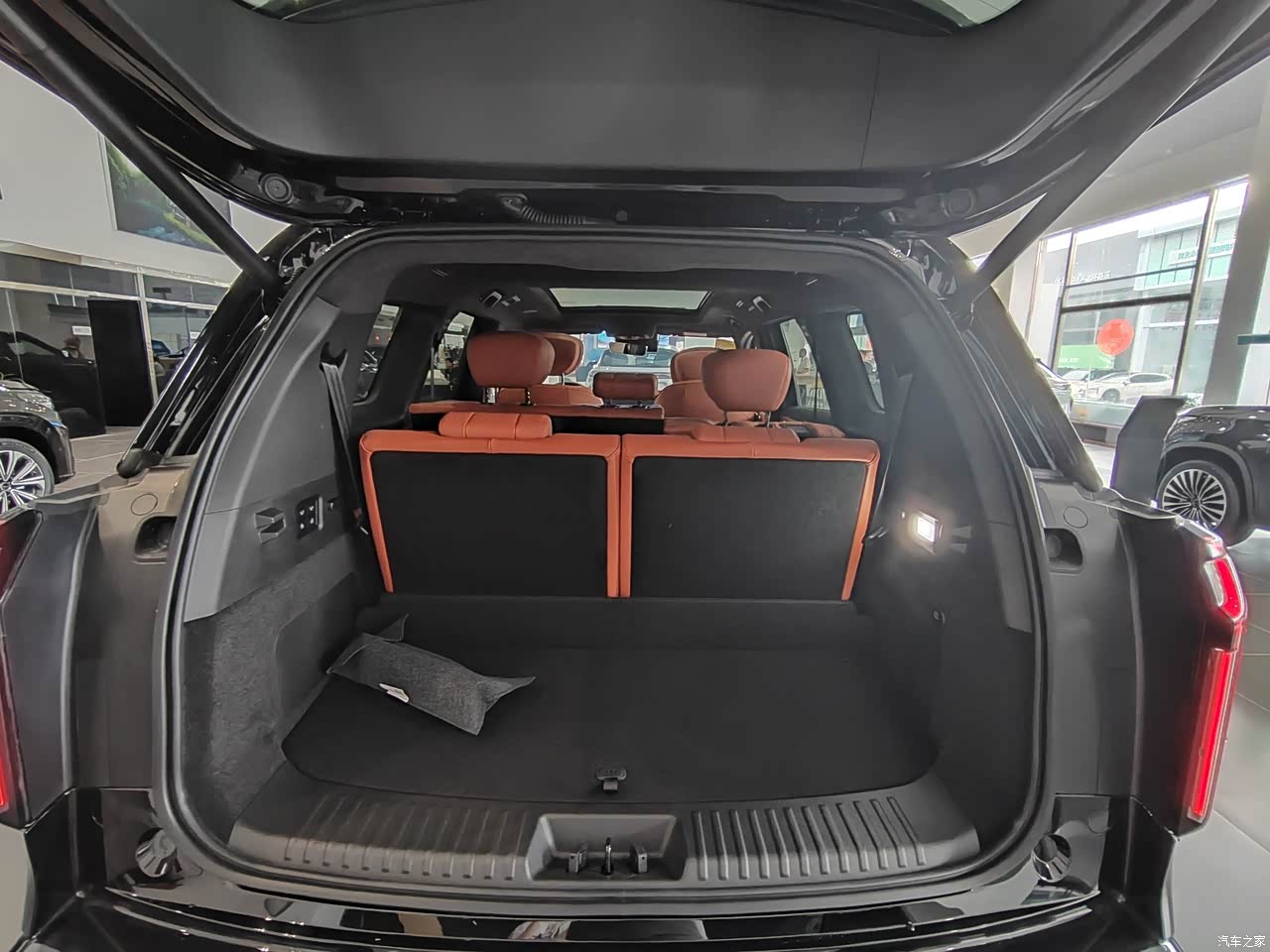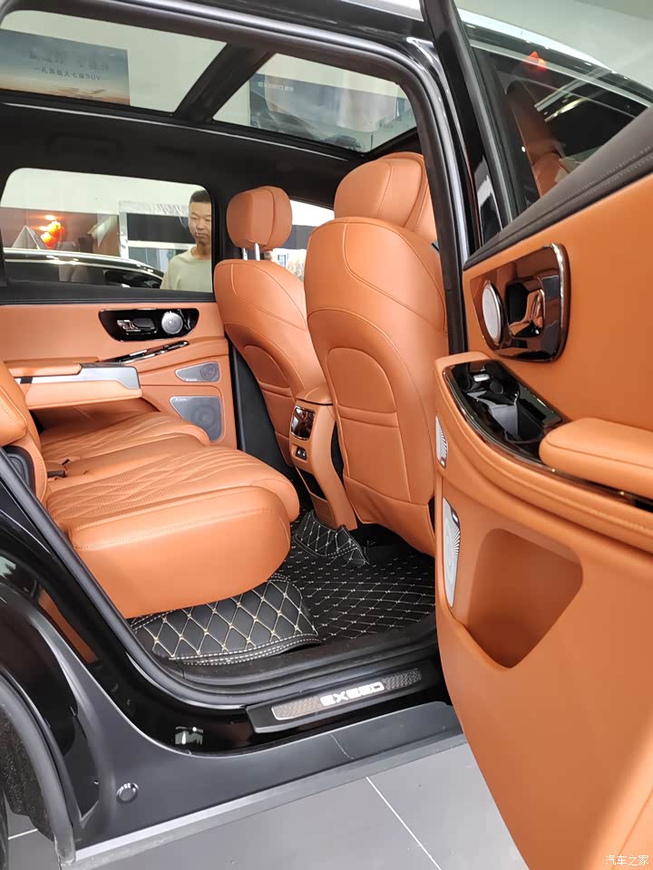 坐进车内,黑棕配色加黑色针织顶棚,豪华感扑面而来。91%软包覆盖率,Ultra-touch云朵超软皮座椅,柔软舒适,包裹性和支撑性都很棒,久坐不累。前排标配加热和通风功能,可惜取消了按摩。二排座椅调整后,腿部空间宽敞,中间通道方便进出第三排。三排座椅高度合适,靠背可调节,还有独立空调和杯架,对乘客很友好。中控台把启动面板往前挪,避免误触。12.3英寸全液晶仪表+15.6英寸中控屏+12.3英寸副驾娱乐屏的三联屏布局超吸睛,显示清晰,操作流畅