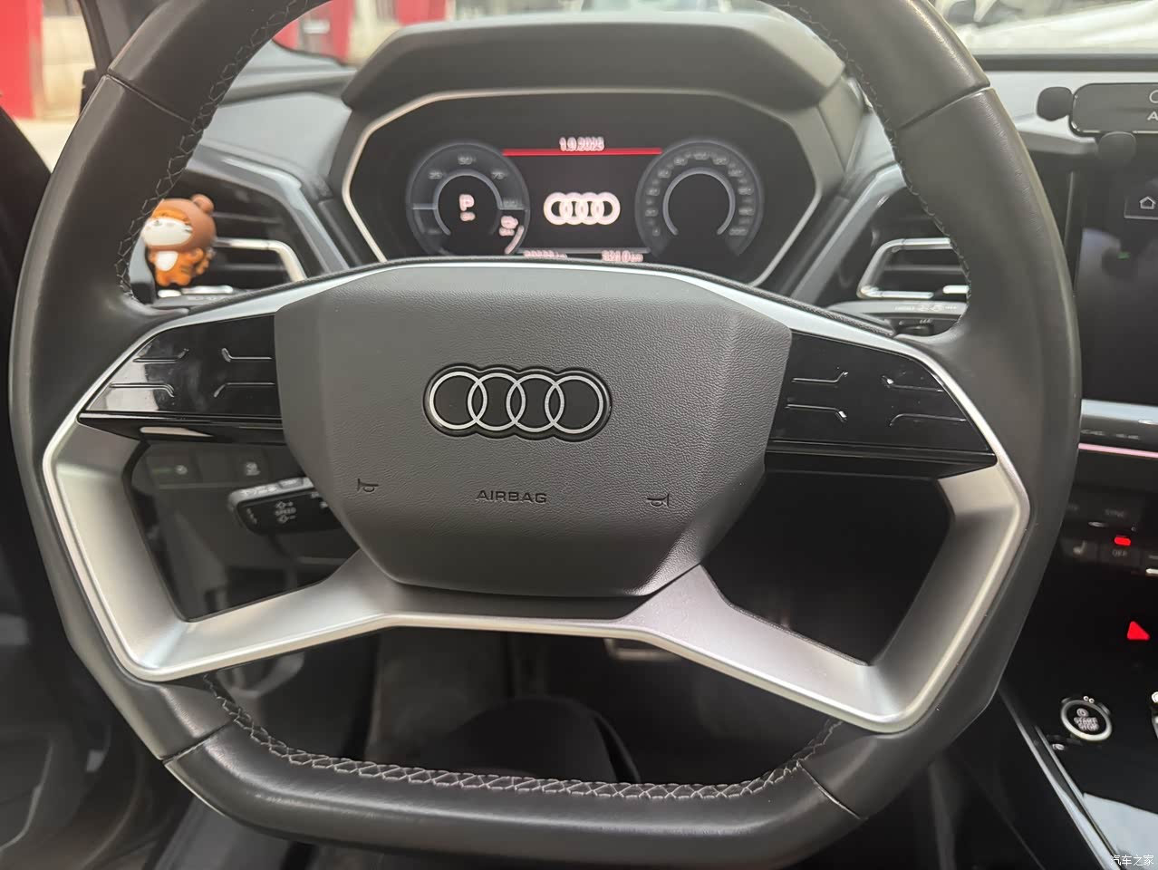 奥迪 Q4 驾驶感受偏向平顺舒适,日常通勤体验尚可。纯电版本起步轻快,动力输出线性,低速行驶时无明显顿挫,加速超车时动力响应及时,满足城市道路行驶需求,但高速段再加速能力略显平缓,推背感不如低转速时强烈。底盘调校偏舒适,路过减速带或细碎颠簸路面时,能有效过滤震动,车身姿态稳定,不过快速过弯时侧倾稍明显,操控极限不算突出。转向手感轻盈,低速挪车方便,高速时会略微加重,指向性精准度中等,虚位控制在可接受范围。隔音表现中规中矩,60km/h 以下风噪、胎噪控制较好,时速超 80km/h 后风噪会明显传入车内,对驾乘静谧性有一定影响,整体适合追求平稳驾驶的用户。
