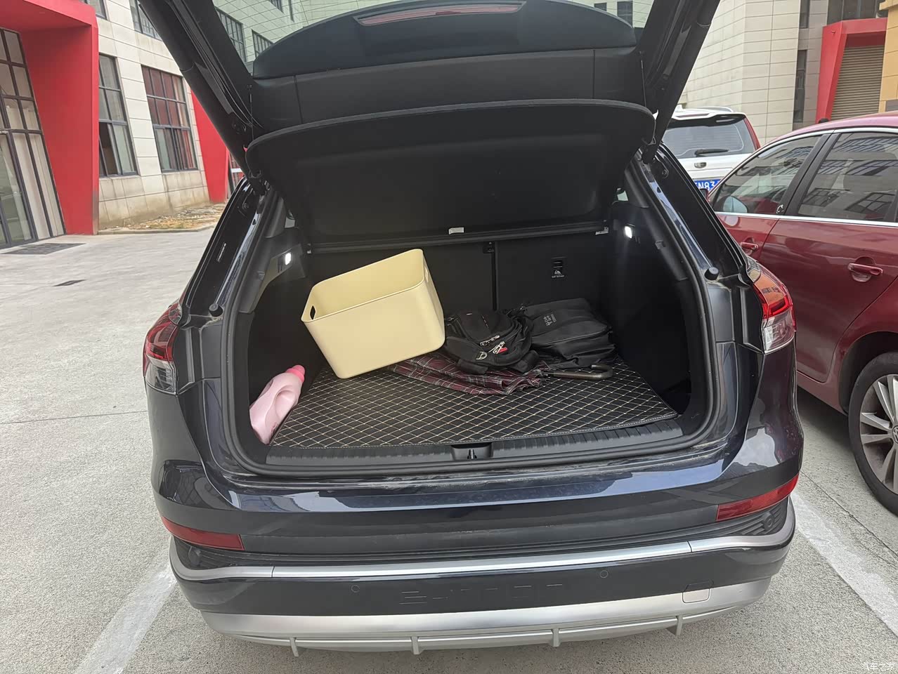 奥迪Q4在空间打造上颇为用心。其车长4588mm、车宽1865mm、车高1626mm,2765mm的轴距在紧凑型SUV里优势显著,为车内宽敞空间筑牢根基。前排驾驶者拥有充裕的头部与腿部伸展空间,调整座椅后,身高175cm的乘客落座后排,腿部能有一拳四指的余量,头部也有约一拳距离,即使是178cm的高个子,腿部空间也能超过两拳,头部空间仍有四指,后排中间地板近乎全平,满载时也不会局促。 后备箱日常表现就很亮眼,520L的基础容积,放下两个30寸行李箱轻轻松松,能应对日常购物、短途出行。要是碰上搬家、自驾游等需搬运大件物品的情况,后排座椅4/2/4比例放倒的设计堪称“空间魔法师”,瞬间将后备箱容积拓展至1490L,滑雪板、自行车等大型装备都能毫无压力地装入,灵活多变的空间布局,全方位满足了不同场景下的载物需求 。