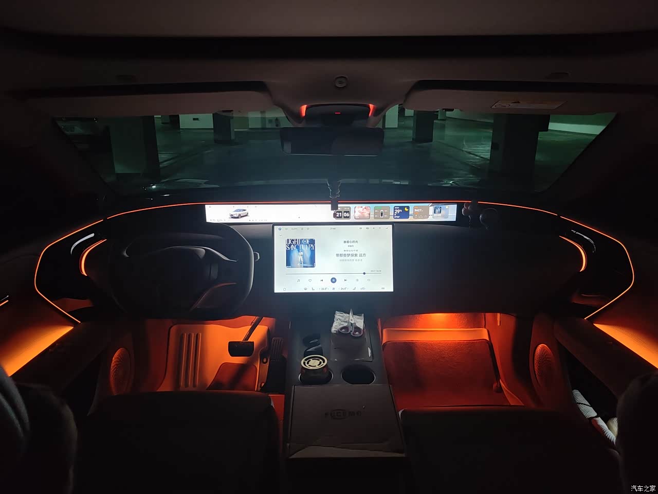 内饰我选的白棕,买之前还是担心打理麻烦,实际用下来没那么容易脏,偶尔拿湿巾擦擦就好了。特别是晚上的时候开启氛围灯真的很豪华,虚荣心得到满足。