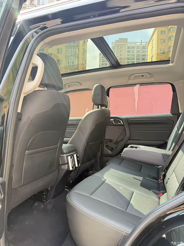 空间整体挺宽敞的。我身高183、体重170,坐主驾调好座椅后,头顶还能留一拳多的距离,不压抑。 后排坐三个成年人也不挤,膝盖离前排座椅有两拳左右的空隙,中间地板的凸起也不高,坐中间的人不会难受。
