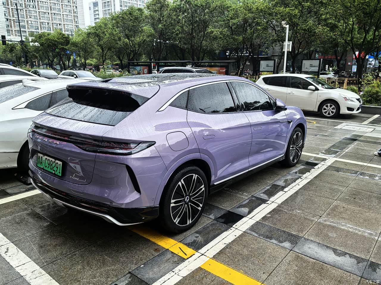 一直不明白为什么很多人要吐槽他外观难看,我却觉得我的小紫这么好看,也许这就是情人眼里出西施吧。溜背的造型,再配上紫色的珍珠漆,在阳光下折射出亮光。腾势的外观尺寸大小高低都很合适,不会像小轿车那样低,做进去就像陷进坑里一样,也不想正常的suv那样高,上个车都要拉个扶手。所以在我看来我的小紫就是这么的完美。