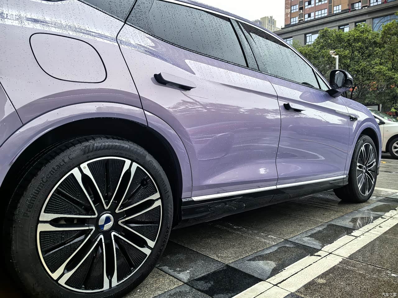 今年四月份开始看车,基本上把30万左右的新能源都看了一遍,第一次走进腾势的体验店,紫色的N7就印在了我的记忆里。虽然后面对比了极氪7x、特斯拉model y、阿维塔07、理想L6、蔚来es6、问界m5等等同价位的车,对腾势的喜爱还是如初见一般不曾减退。最终在8月份提到了心爱的小紫630款。对小紫最满意的点不止一个,我慢慢说来:一是作为一个深度音乐爱好者,不得不提的就是全系标配的帝瓦雷音响了,每次上车打开音乐的那一瞬间,完全被音乐环绕,心情都变得无比开心。另外在车上看电影的时候选择杜比环绕音,再配上全景天幕和座椅按摩的感觉堪比电影院的效果。二是多数人吐槽的内饰,却长在了我和家人的审美点上,怎么看怎么喜欢,豪华感拉满,情绪价值给的非常到位。我和家人都比较喜欢比较复杂的内饰,不喜欢两个大连屏一个外加一个平板无线充电的内饰。所以腾势N7内饰带给我们的体验感非常的足,这也是为什么我们对比了各个品牌的同价位车型后,依然选择腾势N7的一个很重要的原因,也许这就是一见钟情了。