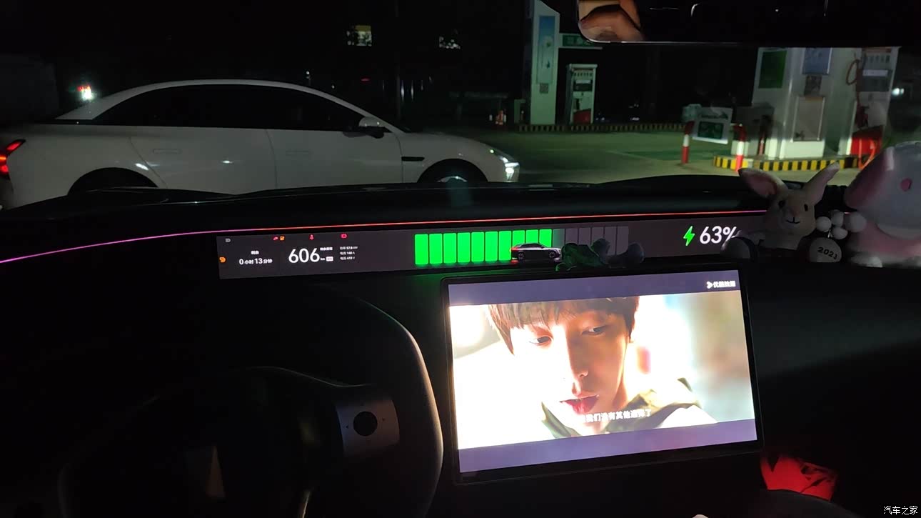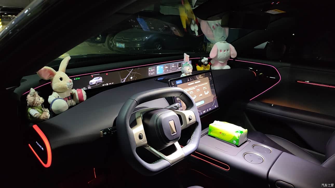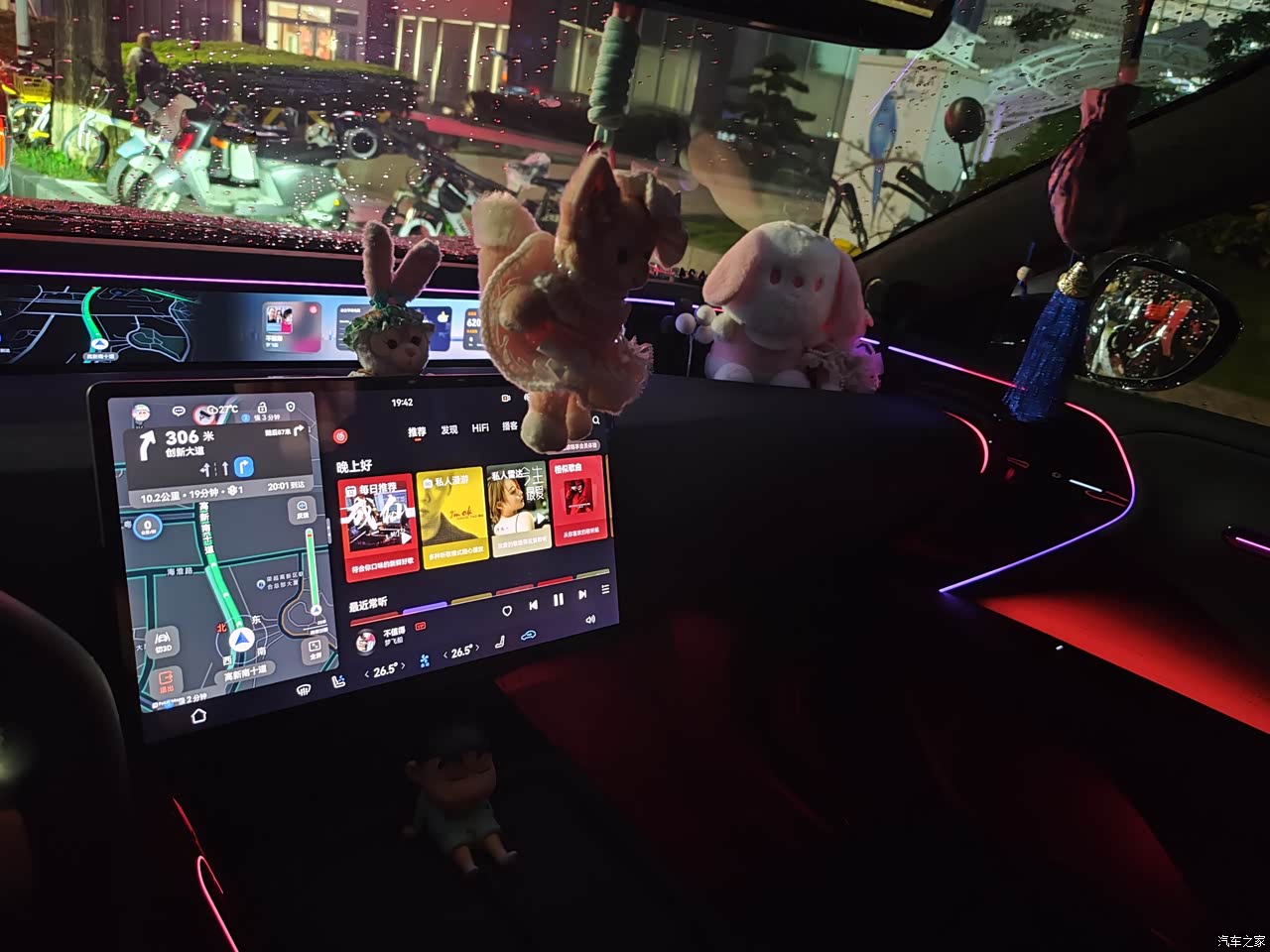 晚上氛围灯是渐变的,亮度刚好,不晃眼,开车时余光扫到挺舒服。