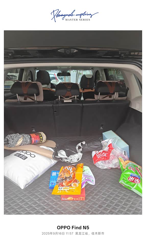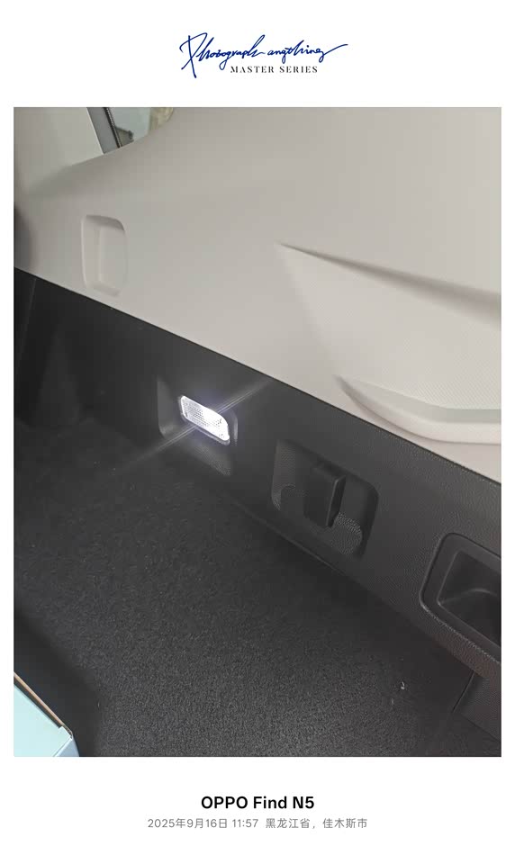 空间没的说 魔术一样 感觉小但是 进去很大但是这里要是大点就好了我手机放里能拿出来 但是很费劲 我手机可能大,这大后备箱能放倒,我拉过茶几