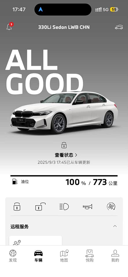 通勤几天下来天府大道堵麻了,油耗14…… 刹车油门真的很舒服,一碰就ok。平时过年饭局帮亲戚开车,刹车油门感觉都很粗糙。 330的b48发动机,在70以下明显有种被憋住的感觉,提速和转向都很丝滑,方向盘指哪儿打哪儿,车头长也很好习惯。 然后变道预警很好用,伪新手上路,方向盘一震就宁愿压线也不动了,没这个功能起码出险不止一次了哈哈哈,后面发现是右边后视镜没调好。 全景天窗yyds