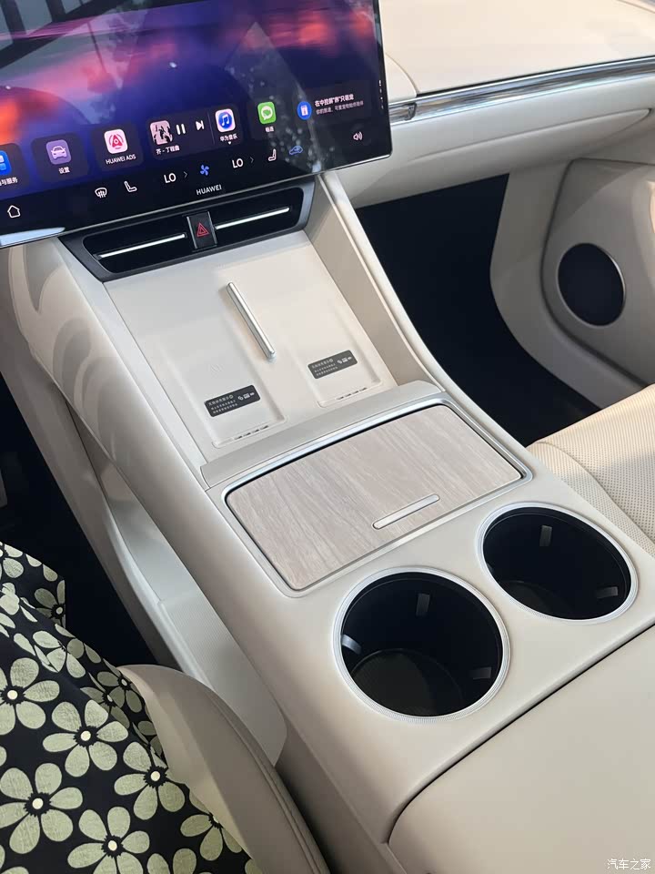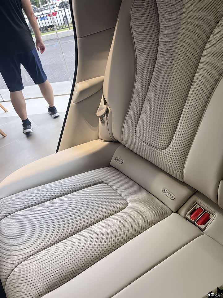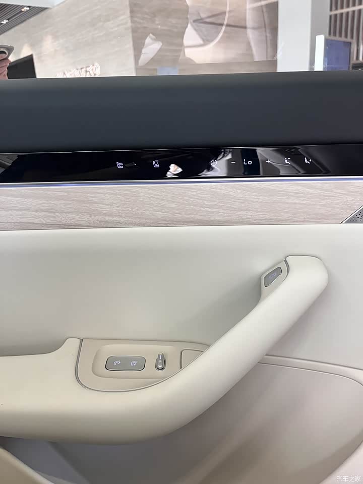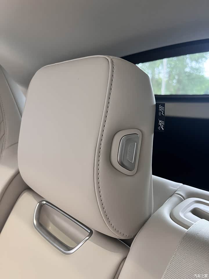 今天看的是乳白色内饰,有点小遗憾,看到网上有紫色的内饰,还是非常漂亮的,更时尚一些。 ①中控:我非常喜欢它的中控设计,大面积的软质皮包裹,简约的设计,提升了整体的高级感。副驾的手套箱,也是分2个区域可是上下各自打开的。 ②前排座椅真皮材质,包裹性和支撑性不错,加热通风、按摩都是配备了。主副驾都支持零重力座椅。二排的空间,无论是腿部还是头顶都有足够的空间,后排座椅的加热通风的调节设计很漂亮,在车门上触摸按键,这个是我非常喜欢的。后排座椅也支持了角度的调节,舒适性能更好一些。