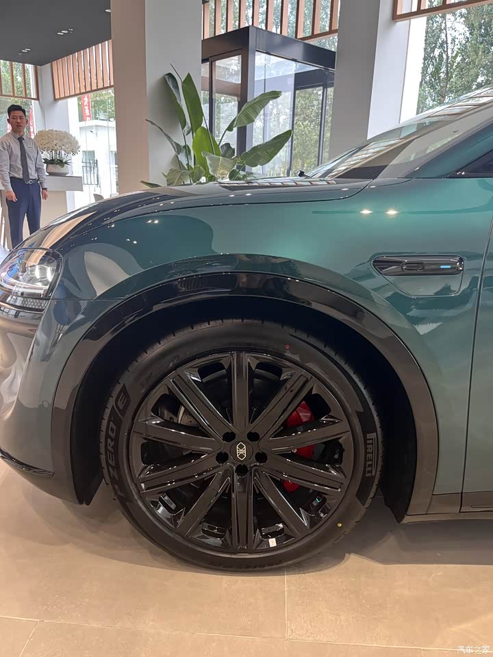 延续了老款的经典设计造型,只在小细节上做了升级。增加了一个极光绿配色,整体看起来高级感十足。 ①车标设计改变了,看起来高级感更强一些,这下区分新老款可以一眼发现了。还新增了脚踢式感应尾门的功能。 ②大灯做了新的设计,主灯的下方加了波纹灯。中间是贯穿式设计的小蓝灯。 ③激光雷达也进行了升级,车位正后方又增加了一个固态的激光雷达。所以可以支持华为ADS 4的辅助驾驶。 ④侧面,整个车身比较舒展流畅的,而且侧面的线条勾勒的比较细腻。边框的后视镜也是配了小蓝灯。 ⑤二十英寸的轮毂,采用的是这种亮黑色的涂装,红色的bram bol的一个卡钳,米其林轮胎。 ⑥玻璃,这次四个门都上了双层夹胶玻璃。