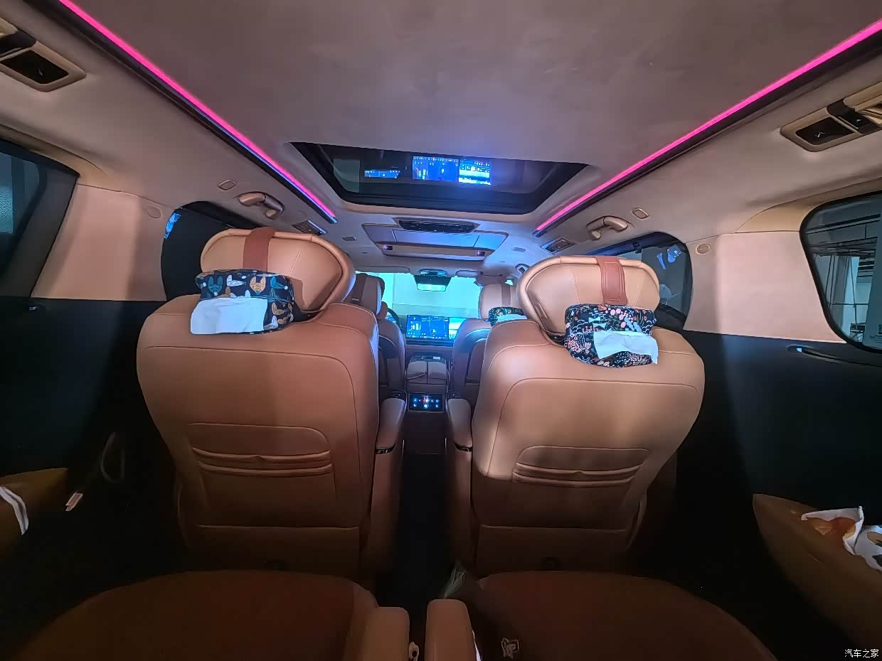 内饰豪华舒适,大量采用NAPPA真皮材质,触感细腻,中控台、座椅等部位皮质包覆工艺好,木纹饰板与镀铬装饰提升质感。空调制冷制热快且均匀,支持分区控制。全车座椅符合人体工程学,二排双航空座椅功能丰富,有12向调节、按摩、通风、加热和零重力模式,第三排也有独立扶手与加热。座椅加热升温快、通风效果好,PM2.5 过滤系统能快速净化空气,为乘客提供健康舒适的车内环境。
