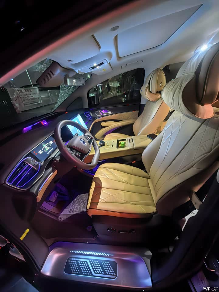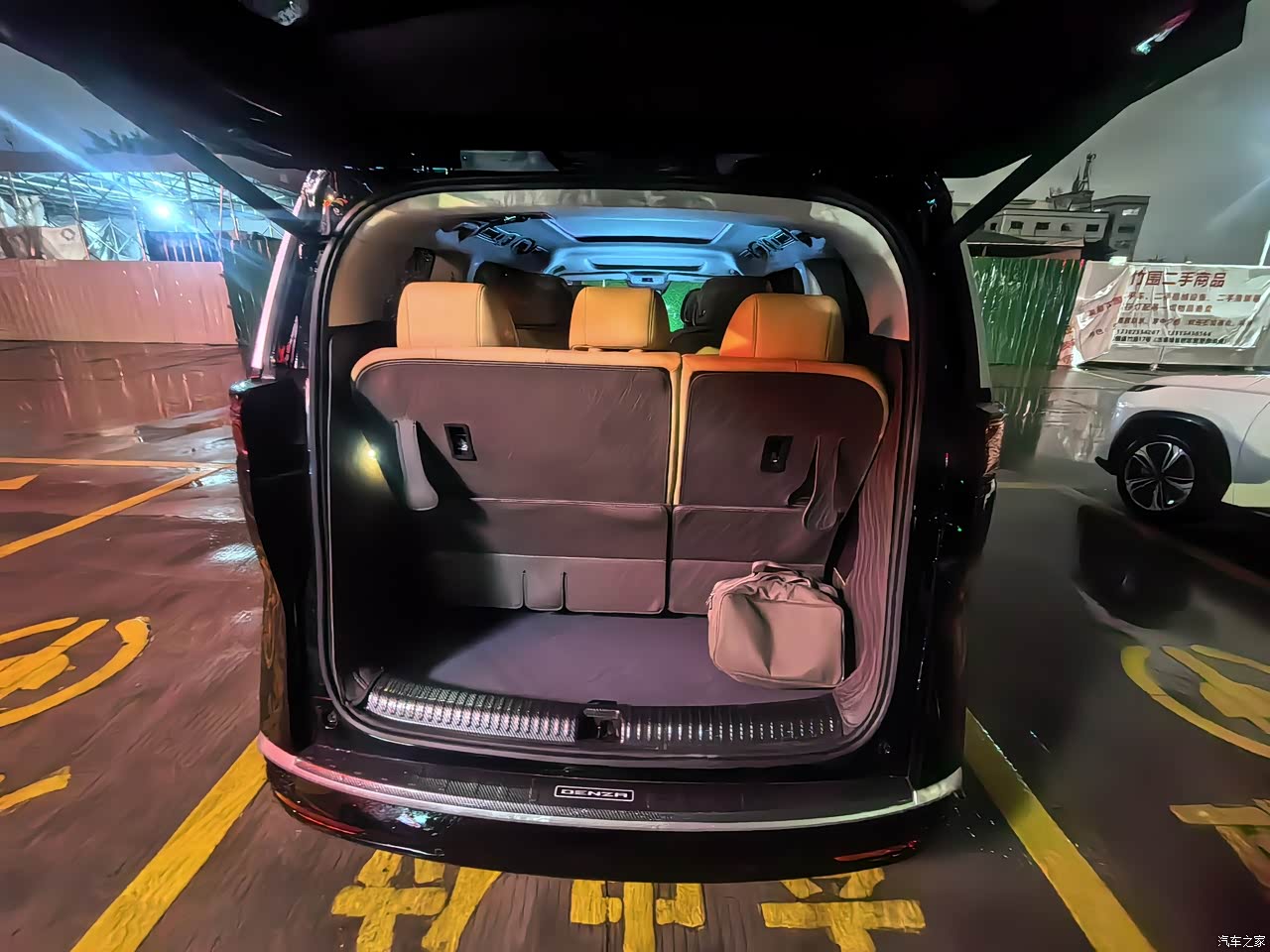 进入车内,首先映入眼帘的是豪华的内饰设计。大量软性材质和真皮的运用,让车内的每一处触感都非常舒适。中控台采用了简洁的设计风格,15.6英寸的中控大屏显示清晰,操作流畅,集成了车辆的各种控制功能和娱乐系统。座椅方面,腾势D9的座椅采用了人体工程学设计,对身体的支撑性和包裹性都非常出色。前排座椅具备多向电动调节、通风、加热和按摩功能,长时间驾驶也不会感到疲劳。第二排更是配备了零重力航空座椅,不仅拥有丰富的调节功能,还具备电动腿托、靠背调节、按摩等舒适配置,让乘客仿佛置身于头等舱。第三排座椅的空间也比较宽敞,成年人乘坐也不会感到局促,而且还支持比例放倒,进一步拓展后备箱空间。 车内的细节处理也非常到位,比如精致的缝线工艺、质感十足的按键和旋钮,都彰显了腾势D9的高品质。此外,车内还配备了大量的储物空间,无论是手机、钱包、水杯还是其他杂物,都能找到合适的存放位置。