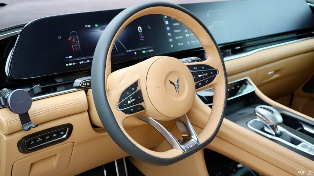 内饰 坐进车里,那感觉立马不一样了一拉开车门,坐了进去,那豪华之感立刻就有了,这驼棕色的内饰确实很显档次!你手能够触及之处,大体上皆是软软的,中控台、门板皆是如此,丝毫没有硬塑料带来的廉价之感, 中控上那三块12.3英寸的大屏幕,极具科技感,我媳妇就喜欢坐在副驾驶看电视剧,彼此玩各自的,互不干扰。夜晚开启那64色的氛围灯,车内的氛围十分温馨。