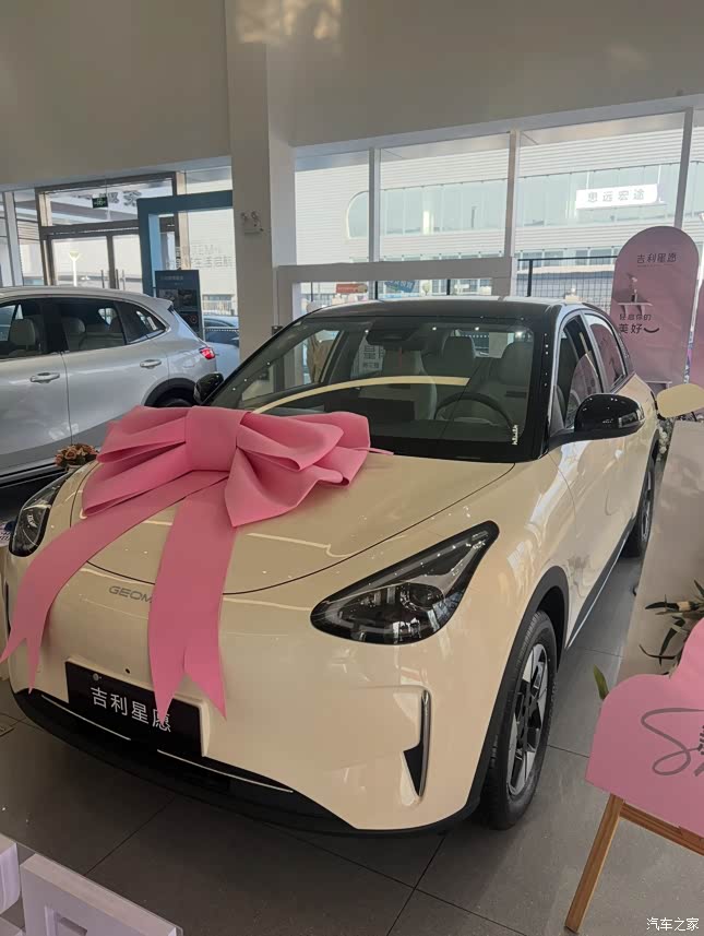 我们选的是410香草米探索+款,实车比图片还好看!黑色的车顶比较喜欢,原车自带黑顶据说比自己贴的要好的,造型可爱又带点未来感,线条圆润、颜色耐看,开出去回头率挺高,等红灯都有人问这是啥车。