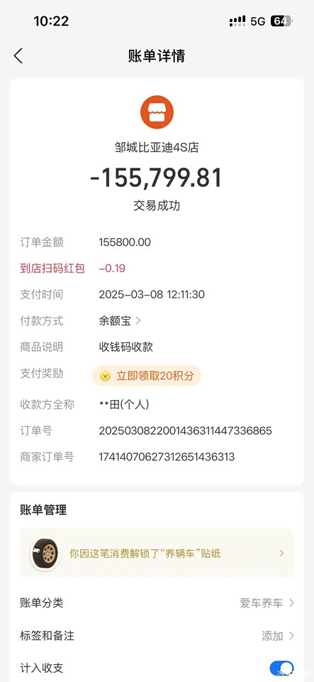 买车之前看到网上说的贷款买车套路多,索性直接全款15.58万拿下中配尊荣型,标配智驾 +并且升级了第五代 DM 混动技术,比同价位合资车配置丰富,亏电油耗实测 5L/100km,日常用电成本极低,本人居住山东济宁,经常用特来电充电桩,仅仅4毛多一度电,充满一次不到八块钱,比在家充电都便宜。