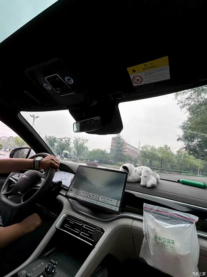 内饰使用大量软性材质包裹,虽然不是真皮但也能感觉到一定的质感,超大仪表盘和超大中控屏深受我老婆喜爱,在副驾听歌看剧完全不是问题, 就是需要注意车机流量,一个月5G,免费提供两年,希望比亚迪能够多给点,哈哈哈。