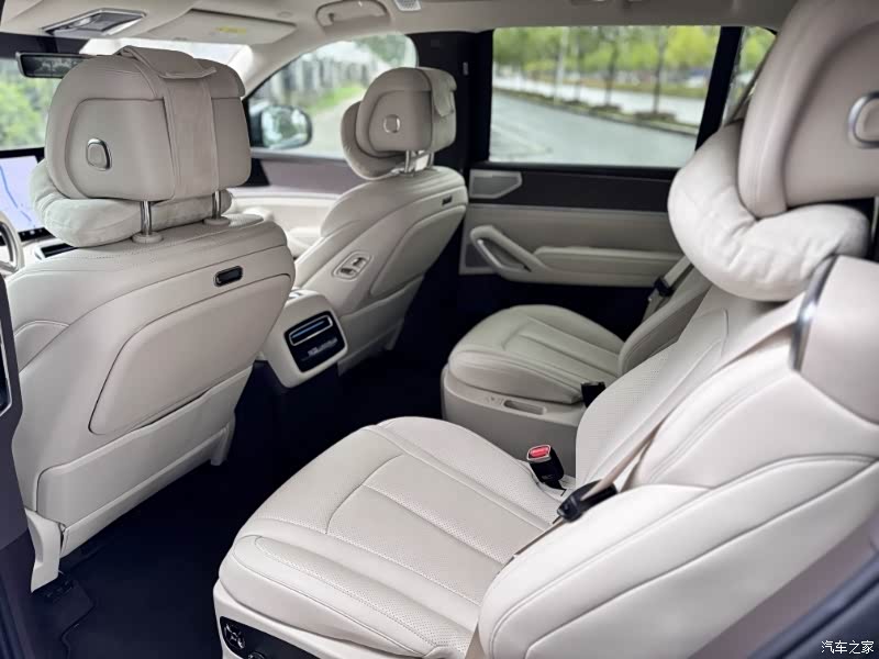 车长可不是虚的,停在小区里比旁边的 B 级车长出一大截,气场特别足。六座布局太实用了,完全不用为了凑七座委屈第三排。第二排独立座椅能前后滑动 20 多厘米,我 178cm 坐进去,腿能完全伸开,扶手放下后既能放水杯,又能搁手机。第三排更惊喜,我 183cm 的表弟坐进去,膝盖离第二排座椅还有两拳距离,完全不憋屈。上周全家出游,四大两小满员出行,后备箱塞了两个 28 寸行李箱、一个折叠婴儿车,还有一堆露营装备,居然还有富余空间,实用性拉满。