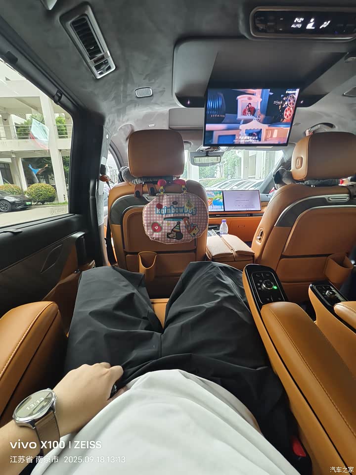 说到为什么选择MPV,最重要的因素之一就是宽大的中排航空座椅。高山8的航空座椅带零重力座椅,有通风加热按摩的功能,坐在第二排打开后排娱乐屏可以说是中午午休的好地方。没有之一,车内开着空间,打开后排的冰箱拿出饮料,打开零重力座椅,打开通风按摩别提多舒适,如果你想小睡一会,打开休息模式,主动播放助眠音乐,设置几点几分的叫醒,这样可以美美的睡上一觉