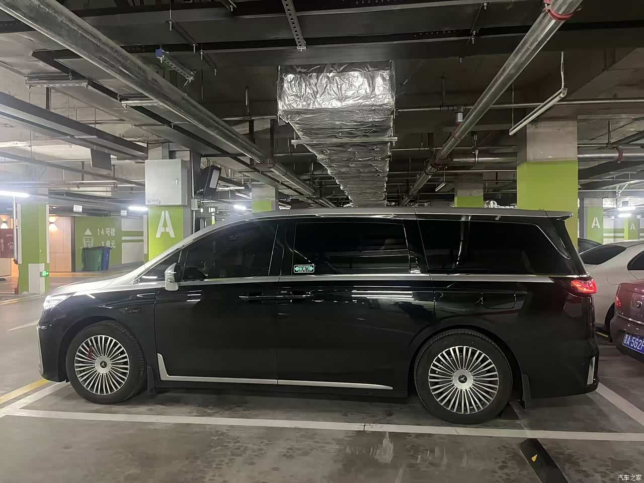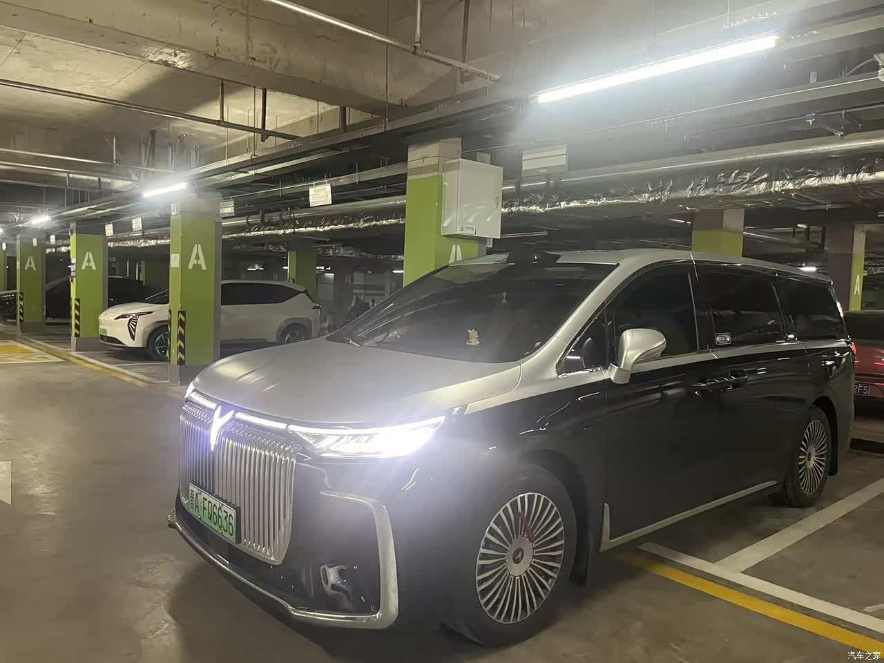 我选的黑色外壳配上驼棕内饰,自己贴了双拼色的膜,这个搭配看着还挺显档次,前脸那个鲲鹏式的大灯,还有镀铬格栅,有次在商场下车库,还有人凑过来看,问这是什么车,车身线条比较稳重,也不显得肥大,尾灯一开始觉得普普通通,看久了也顺眼了。