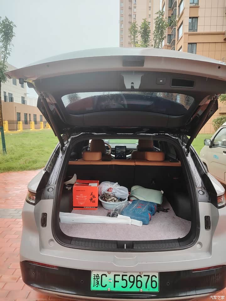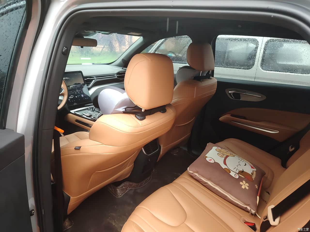空间表现超出预期。我身高1米80,主驾驶调好位置,头部还有一拳多。后排腿部也有一拳多的距离,不会顶腿。门板、中控台下面的镂空、杯架这些该有的都有,放手机、矿泉水、纸巾啥的没问题。后备箱比我想象的大,放一个24寸的行李箱再加几个包也没压力。
