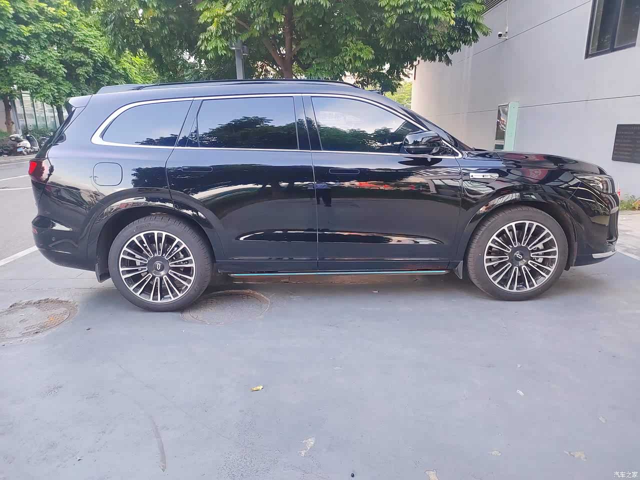 外观看着挺稳重的,适合家用,前脸的格栅不大不小,看着不张扬,前后贯穿式的灯带辨识度很高。车身侧面线条很顺,隐藏式门把手关上后车身特整洁,看着挺高级的。