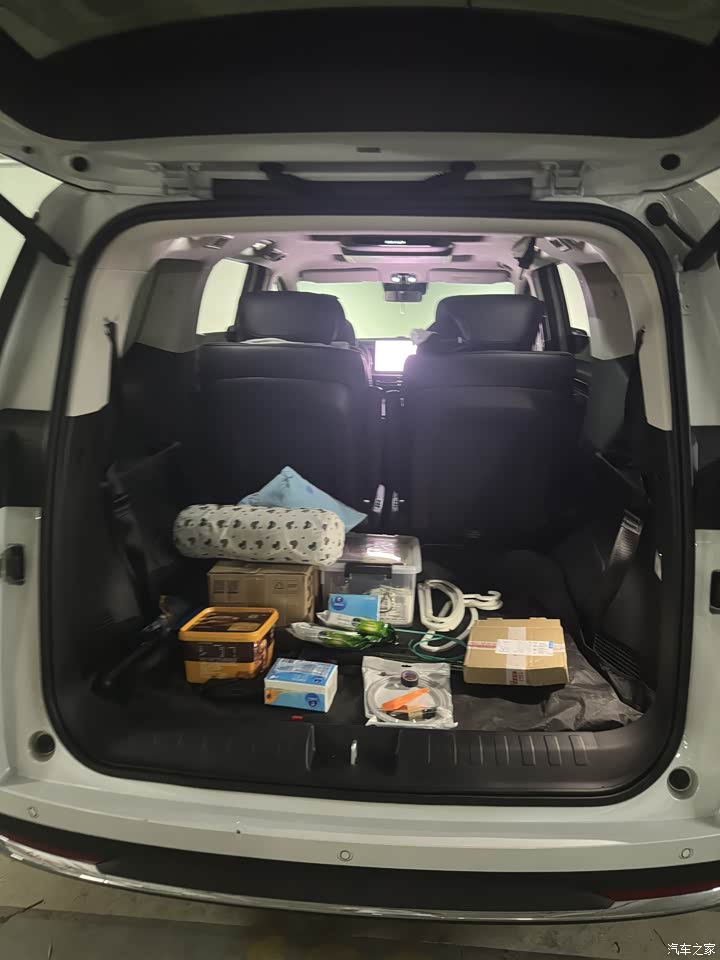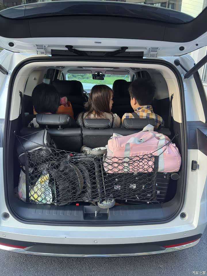 空间就是这车最大的优点和特色,尤其第三排可以收起来,像下收纳,就是一个后备箱巨大的空间。如果自驾游是四个人的话这车出行真的方便,把中排两张座椅向中间靠拢,在再向后推到最后,后备箱已经很大,可以放4个26寸行李箱完全没有问题,再加一些杂物,特别是有长的东西真的太好放进去了。