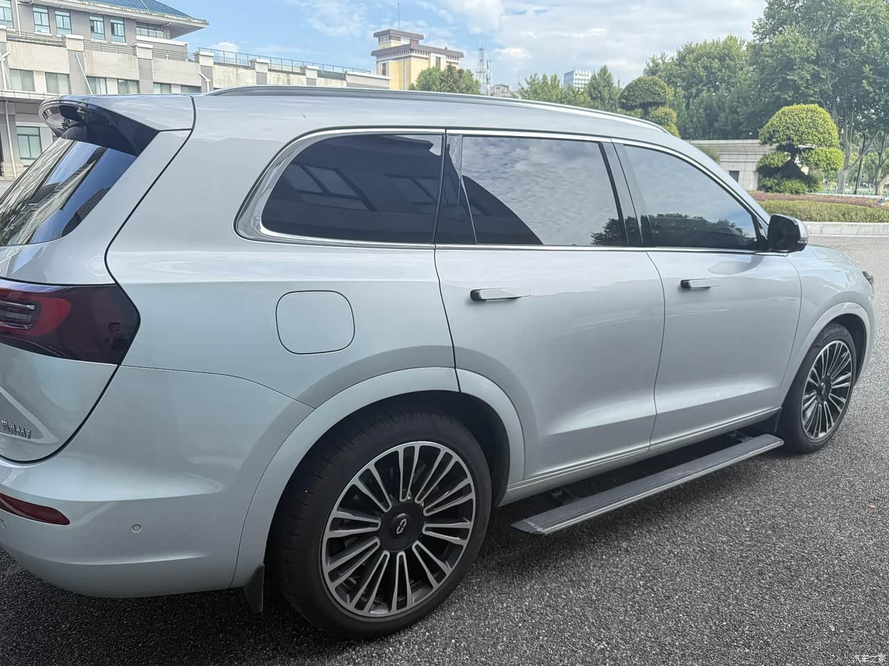 外观看着很大气,车身线条很硬朗,前脸的格栅设计很有辨识度,不过车身颜色选择太少了,感觉少了点新鲜感,年轻消费者可能会觉得不够时尚。