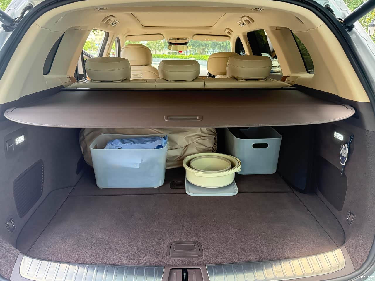 家用空间基本够用,前排很宽敞,腿部活动也自如。后排腿部空间还行,但中间地台有轻微凸起,坐中间的人长时间会不舒服,一家五口短途出行没问题,要是长途后排三人会有点挤。后备厢常规状态能放下婴儿车加一些东西,装大件物品就得放倒后排座椅了。