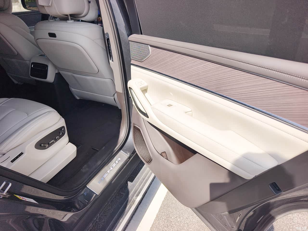 车身尺寸摆在这里,所以他的空间就不会想其他的,就不用多说了什么乘坐空间呀,厨房间我着重讲一下第三排的乘坐感受,我觉得这是很多家庭选择这辆车最看重的一个店,我以我自己来举例子,我的身高是175厘米,体重156斤,坐在第三排实际的感受就是头部离车顶大概还有一个拳头的距离,腿部离前面座椅还有一个伴拳头的距离这样了一个乘坐体验,我觉得足够让我应付长途或者说长时间乘坐这辆车而且平时把第三排放倒之后,其实和后备箱会形成一个相对平整的空间,这个时候车子就是一个大四座的车型,整个后备箱都装载能力非常强,我们办公室翻过几个打印机完全没有问题的
