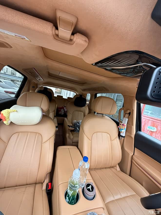 空间 空间这块,MPV嘛,我一米八的个子,前排头和腿都够用,第二排是航空座椅,腿托扶手全有,坐着跟头等舱一样,我爸妈能翘着二郎腿看风景,挺舒服,第三排也不像别的MPV那么小,坐个成年人没啥问题,自驾游带行李帐篷烧烤架,都能装下,把第三排座椅放倒,空间一下就出来了,搬个家都行,第三排地台有点斜,脚放不平,第二排座椅往后调多了,第三排腿部就有点挤,穿厚点的鞋上下车不方便。