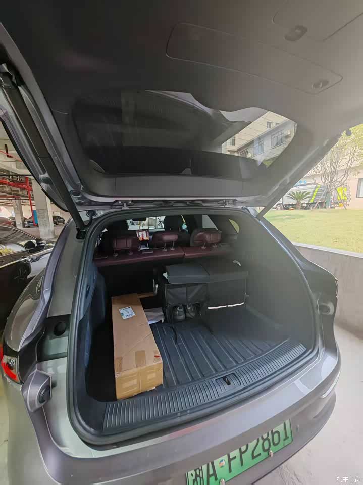 空间就不用说了,中大型SUV,我一米七八坐前面,后排腿前面还有两拳多,翘个二郎腿一点问题没有,地板也基本是平的,后排坐中间那个人不会难受,后备箱590升,放几个行李箱,带点露营的家当都行,后排座椅还能放倒,空间还能大点,车主群里有人说后备箱要是能再挖个下沉空间就好了,前排中控台下面储物的地方是小了点,主要被那个冰箱占了位置,不过副驾那边有个小挂钩,买个早饭奶茶什么的挂着倒是挺顺手。